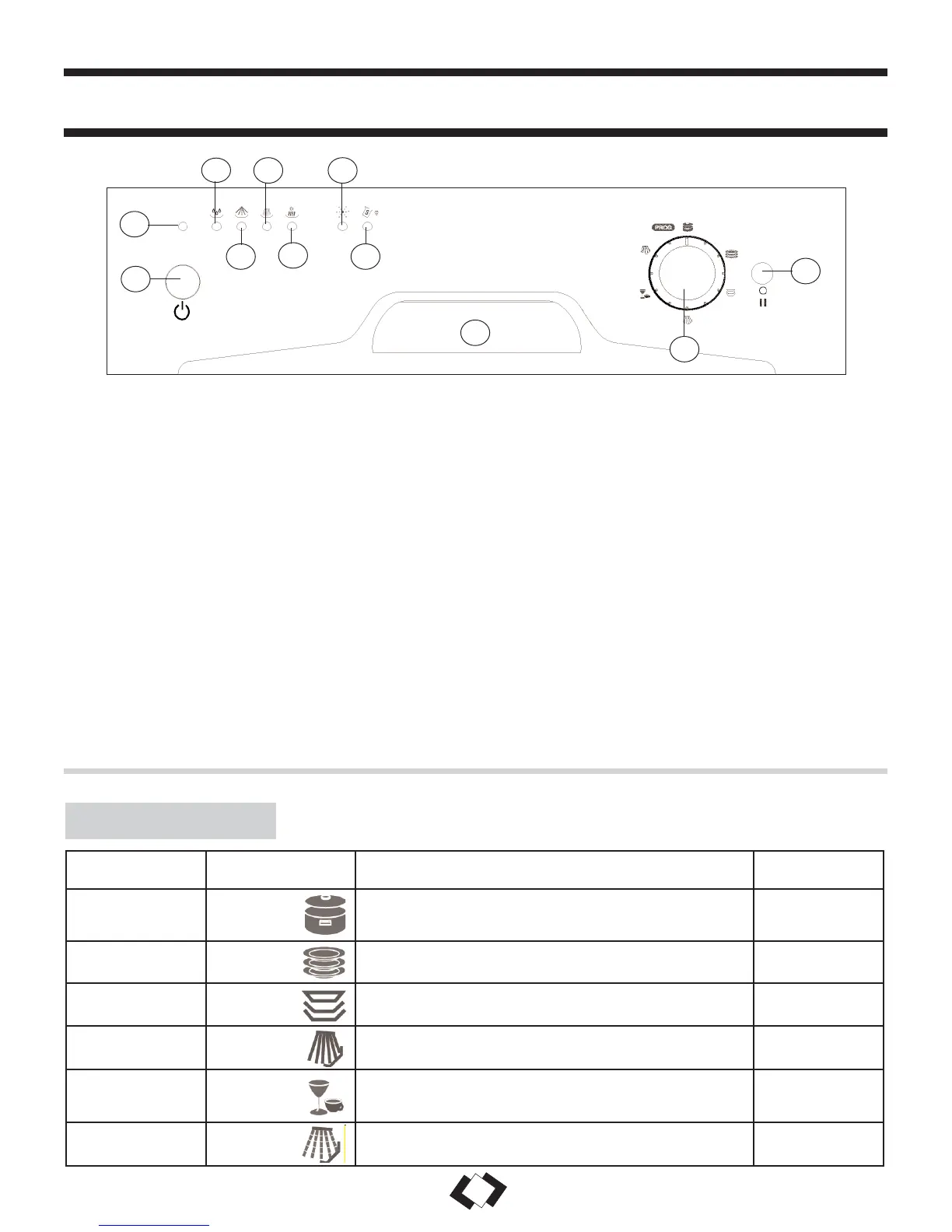 1) Voyant de pré-rinçage : est allumé pendant le