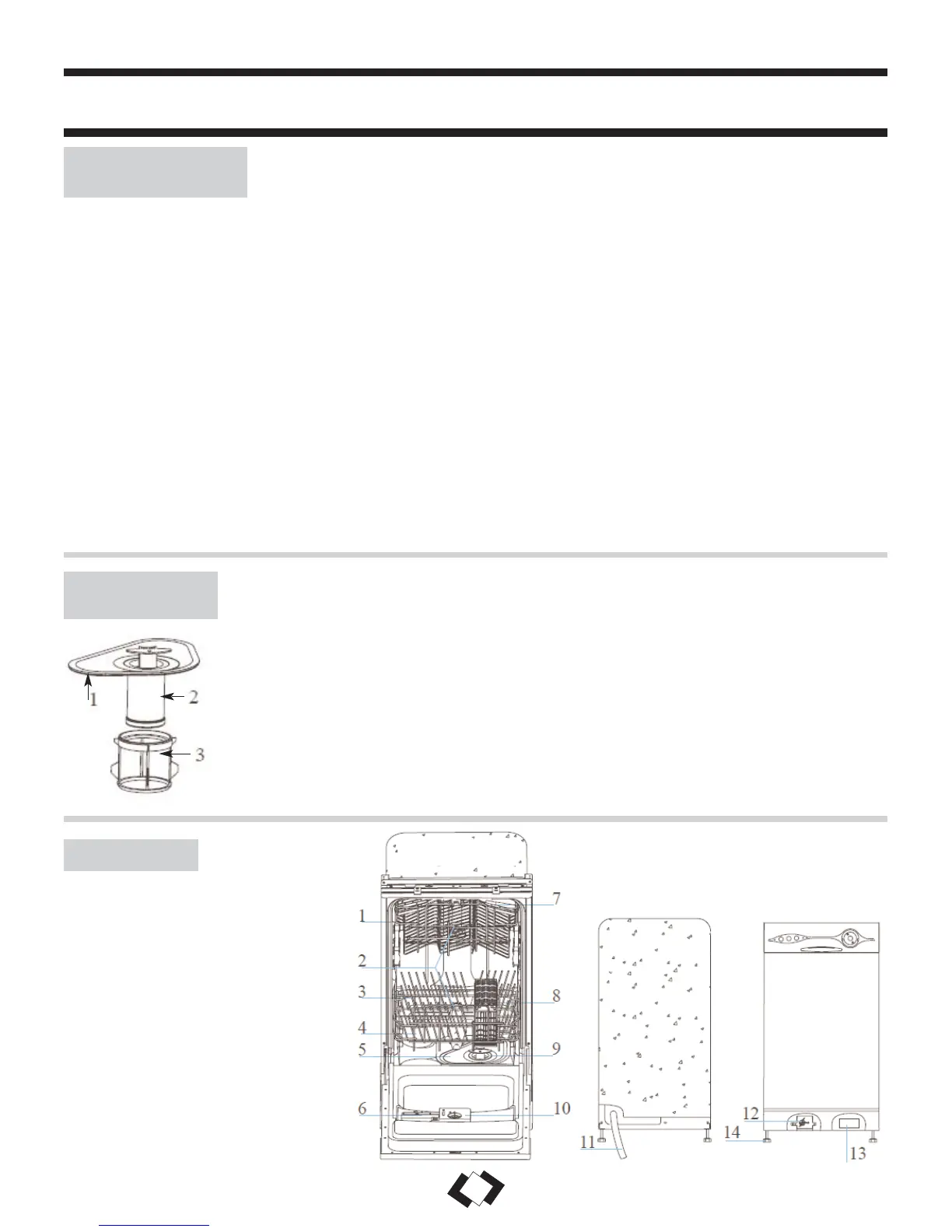 1) MAIN FILTER: Food and soil particles trapped by this filter are pulverized by a