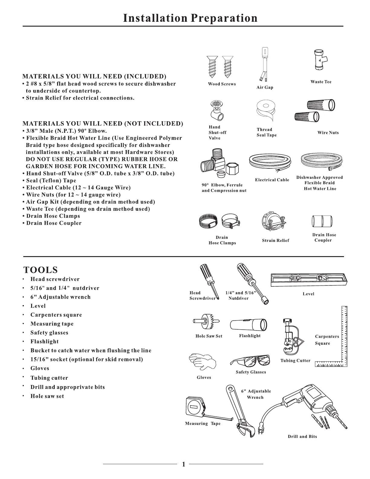 Danby DDW1899BLS - Installation Preparation; Materials and Tools
