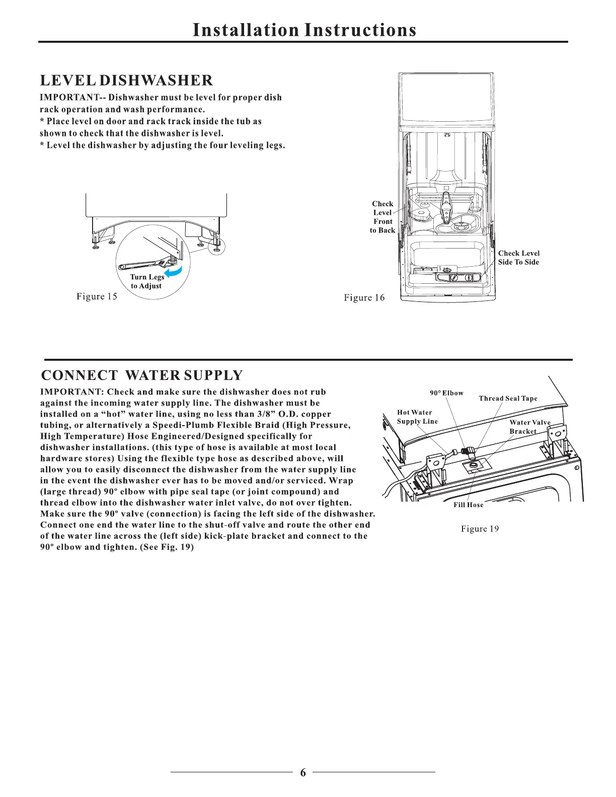 Danby DDW1899BLS - Level the Dishwasher; Connect Water Supply