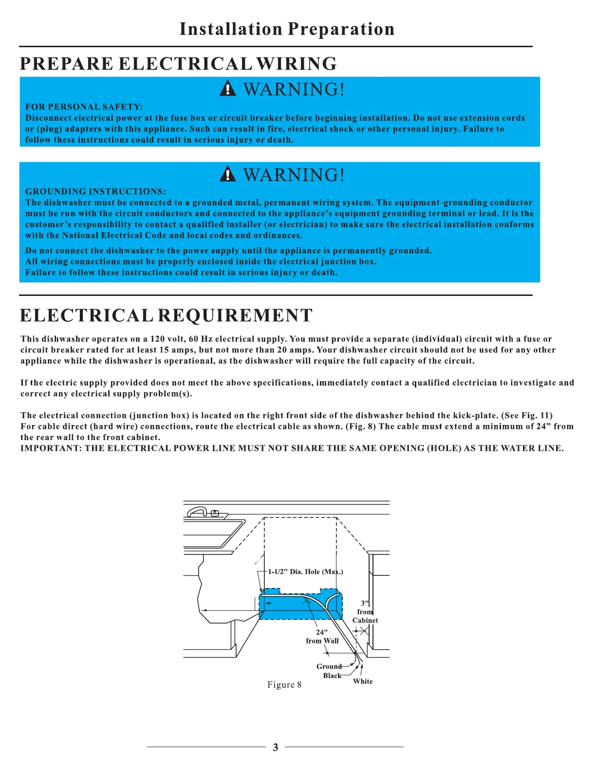 Danby DDW1899BLS - Prepare Electrical Wiring; Electrical Requirements