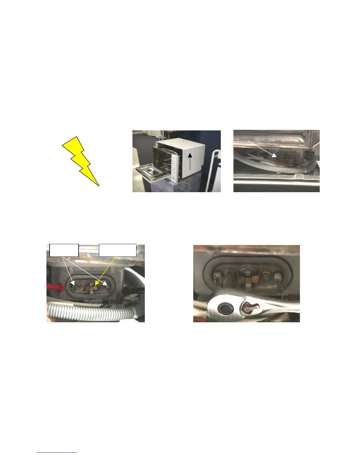 unplug power cord from outlet. refer to procedure #7:Removing outer remove wires and inspect visually for