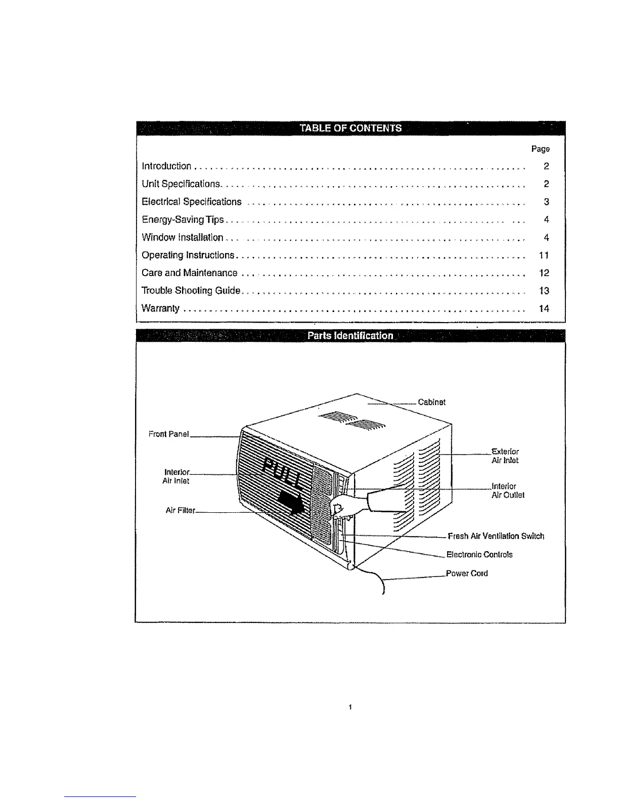 Unit Speclficalions .......................................................... 2