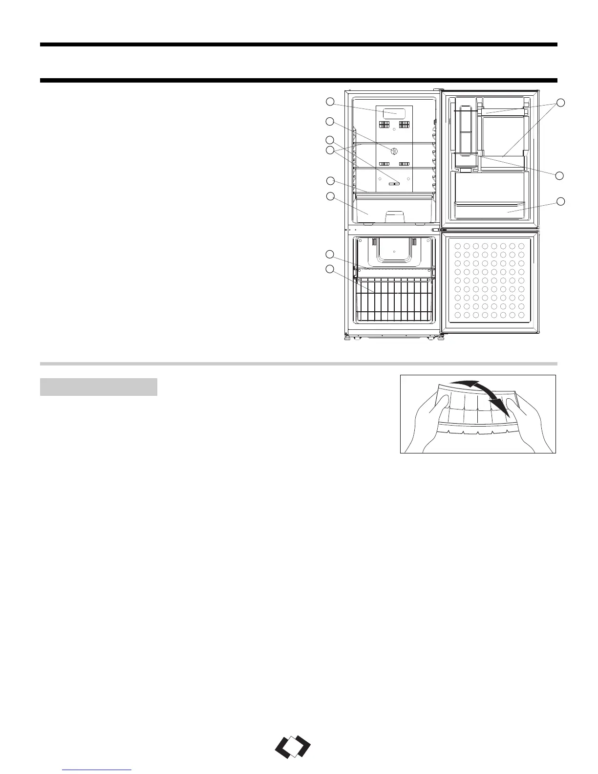 La bendeja para cubos de hielo es flexible. Doble la bandeja para sacar los