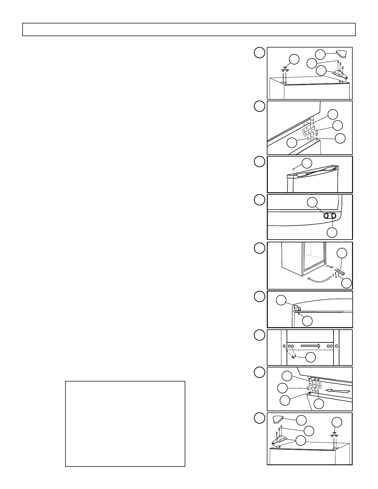 8. Instale la puerta del refrigerador. Instale la bisagra central.