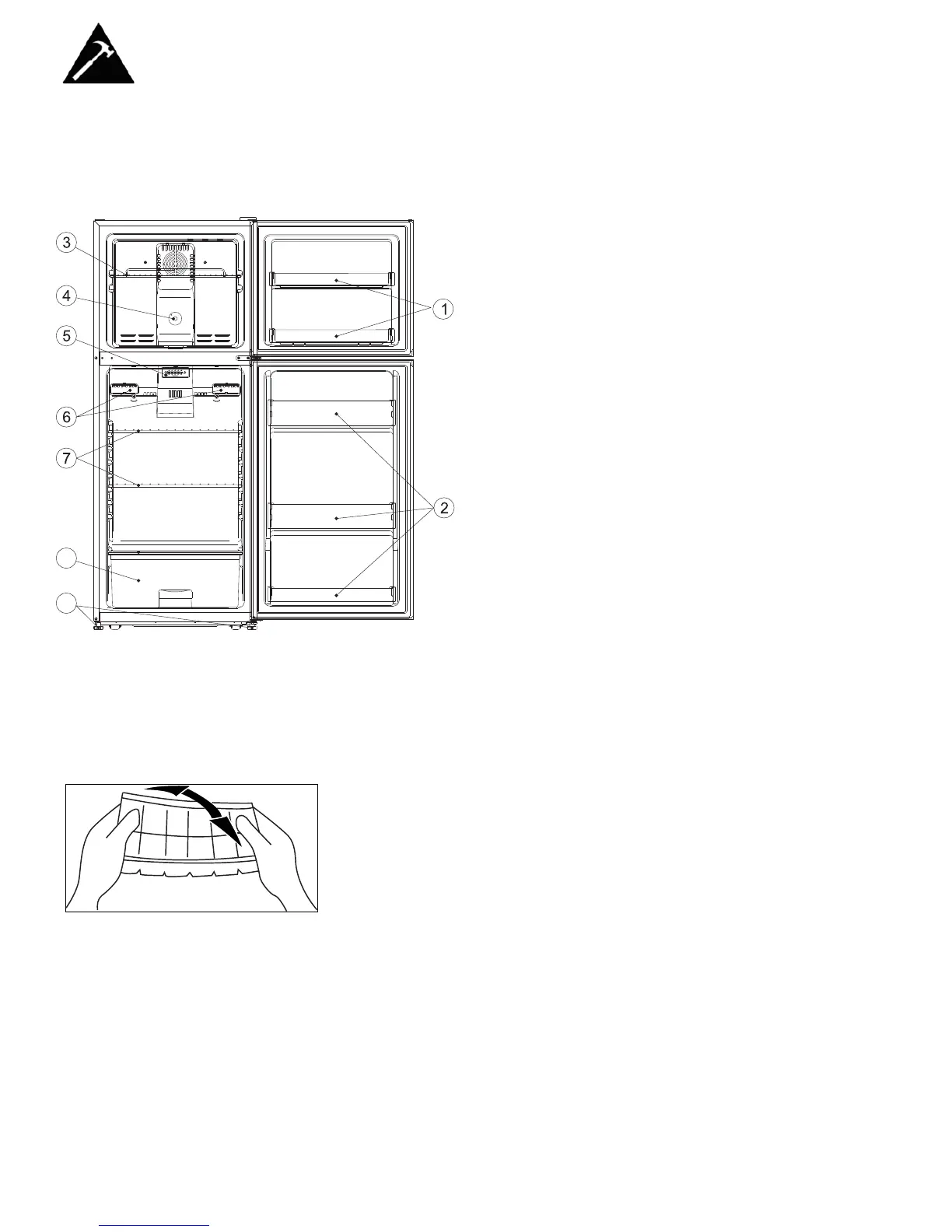 La bendeja para cubos de hielo es flexible. Doble la bandeja para sacar
