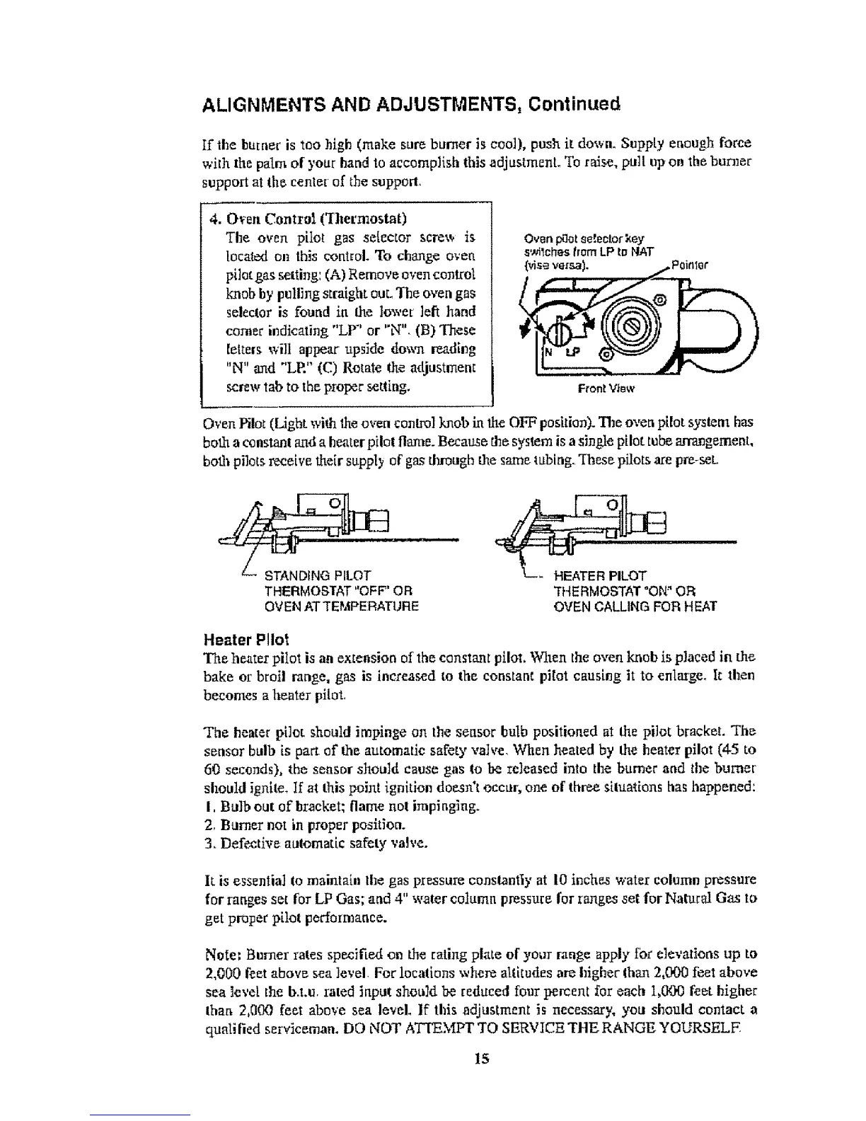 Oven Pilot (Light with Lheoven control bob in the OFF position). The oven pitot system has
