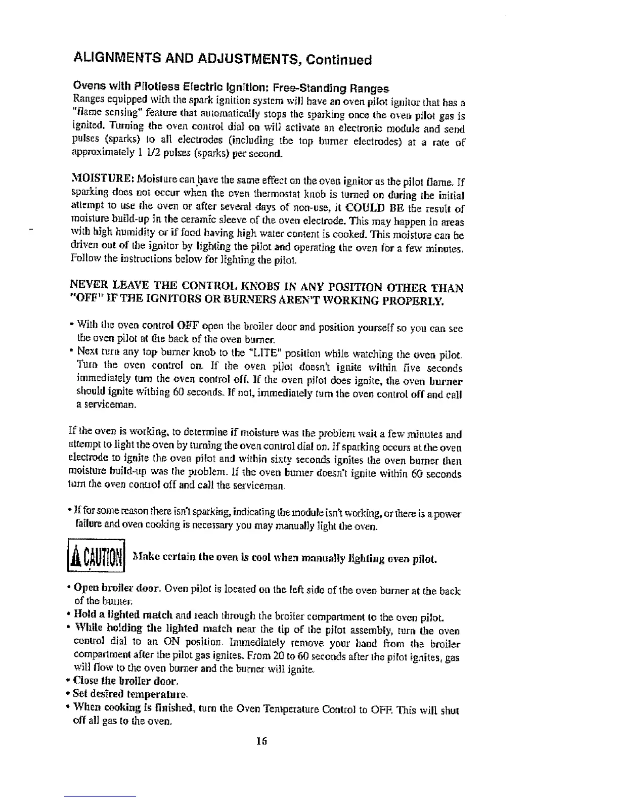 immediately turn the oven control off. If the oven pilot does ignite, the oven burner