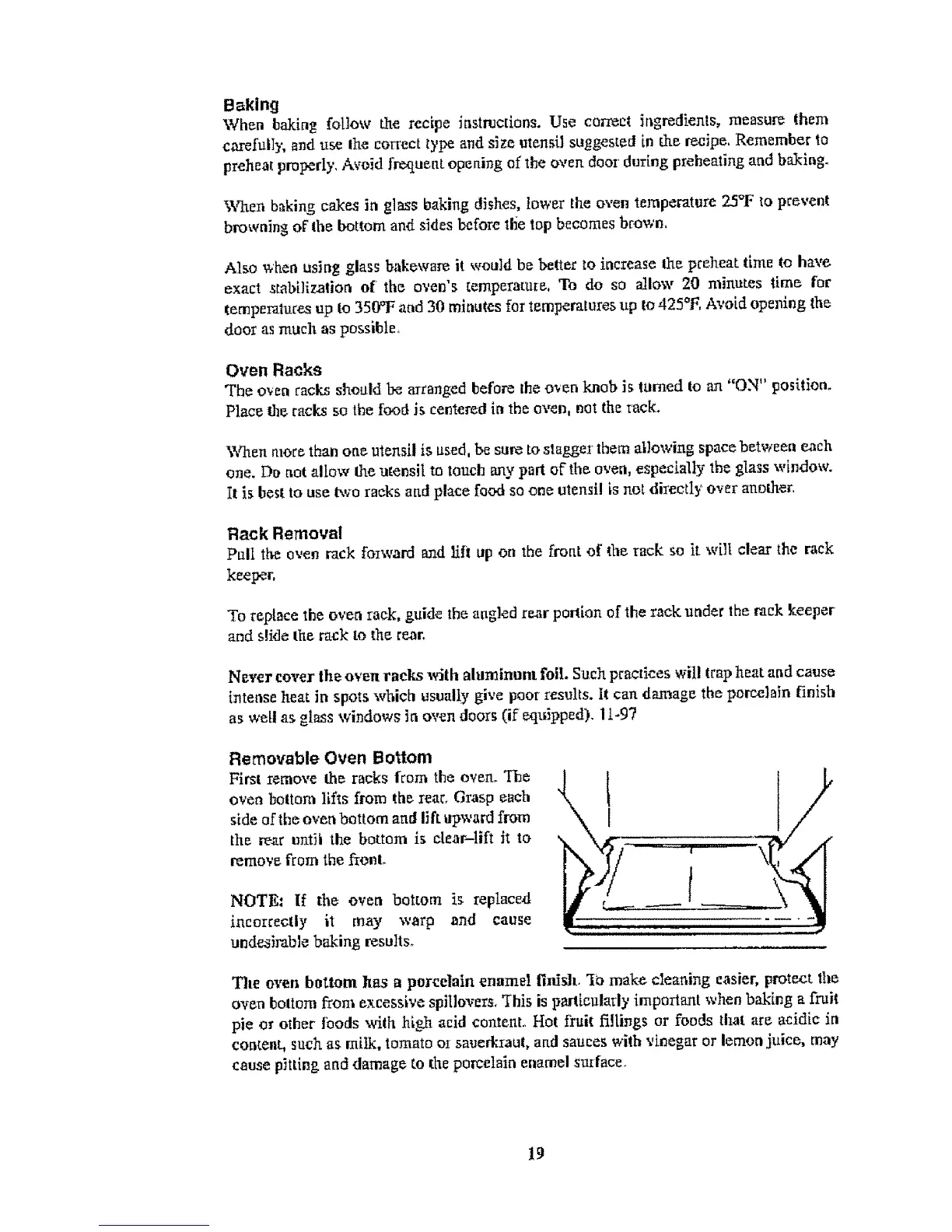 The oven bottom has n porcelain enamel finish. 'I_ make cleaning Easier, protect file