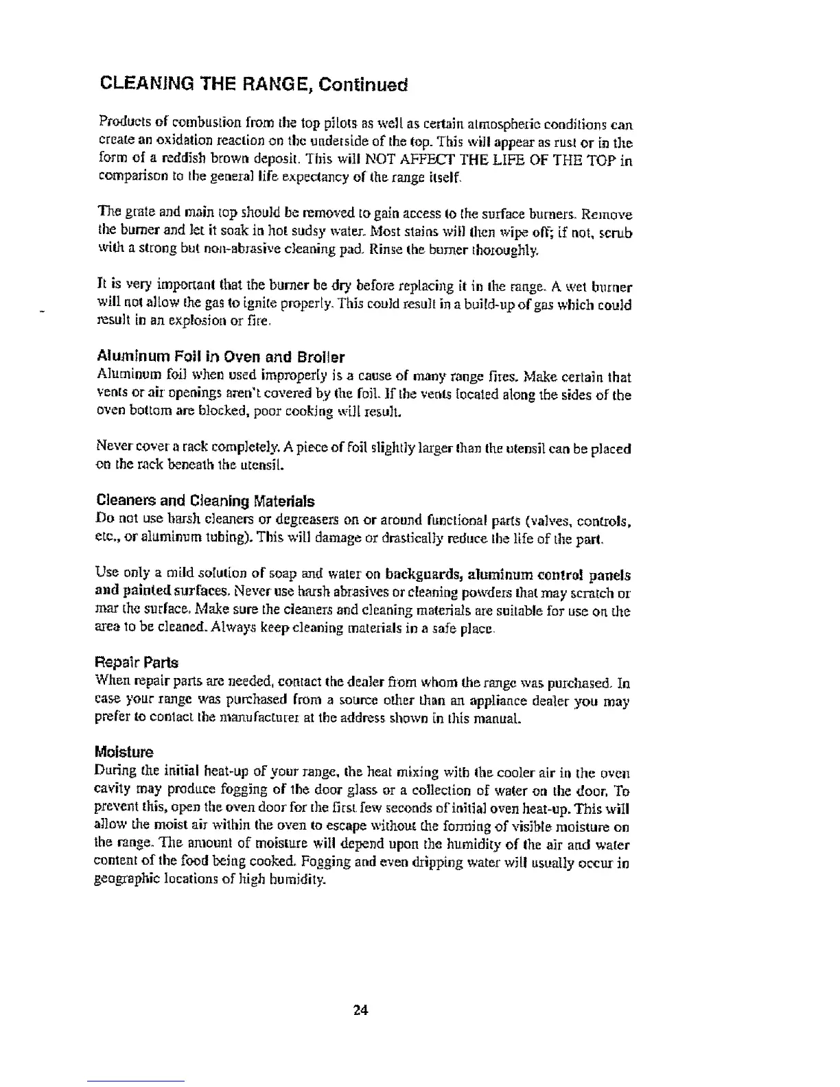 It is ve_' important that the burner be d O, befo:e replacing it in the range. A wet burner