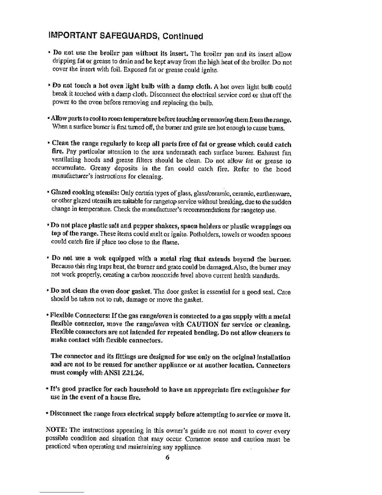 *Flexible Connector.s: If the gas _nge/oven is connected to a gas supply with a metal