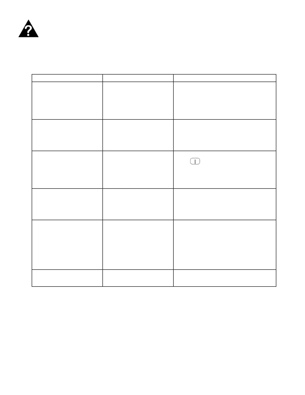 Occasionally, a problem may arise that is minor in nature, and a service call may not be necessary. Use this troubleshoot-