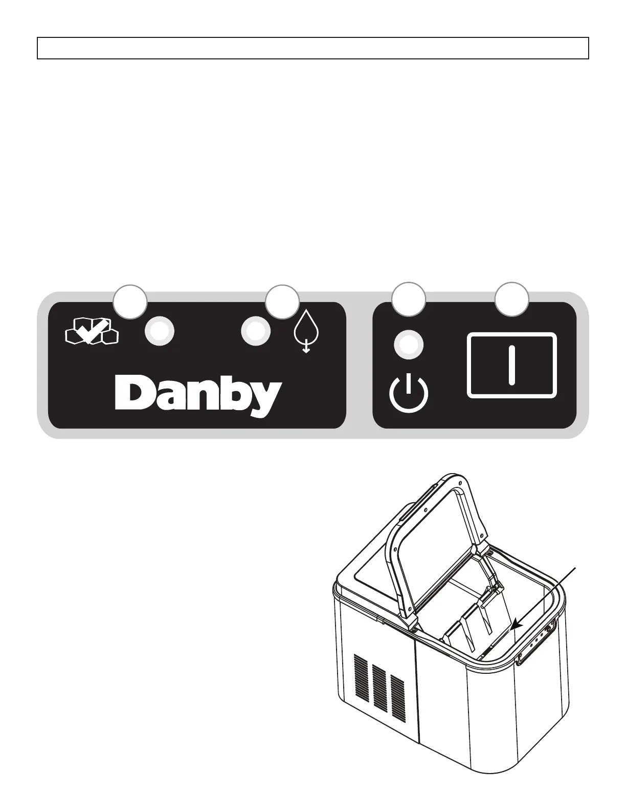 1. Indicateur de seau plein : s’allume lorsque le seau est plein de glace.