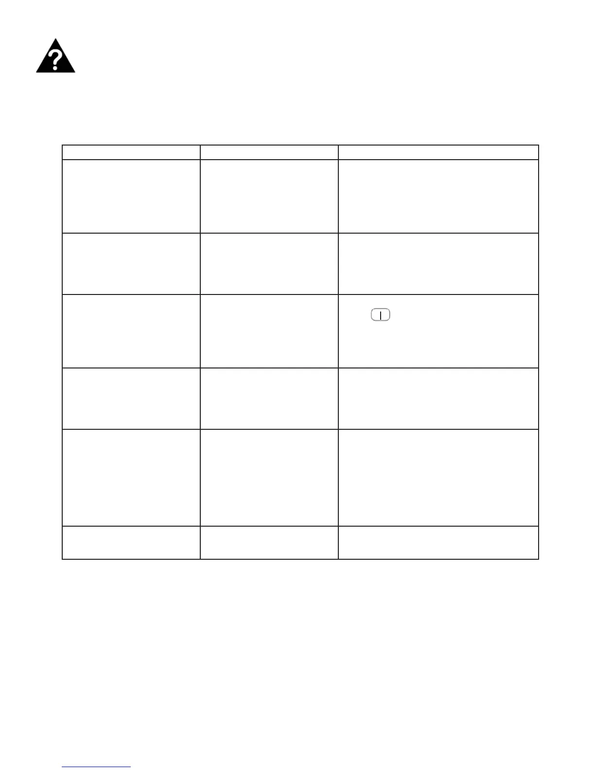Occasionally, a problem may arise that is minor in nature, and a service call may not be necessary. Use this troubleshoot-