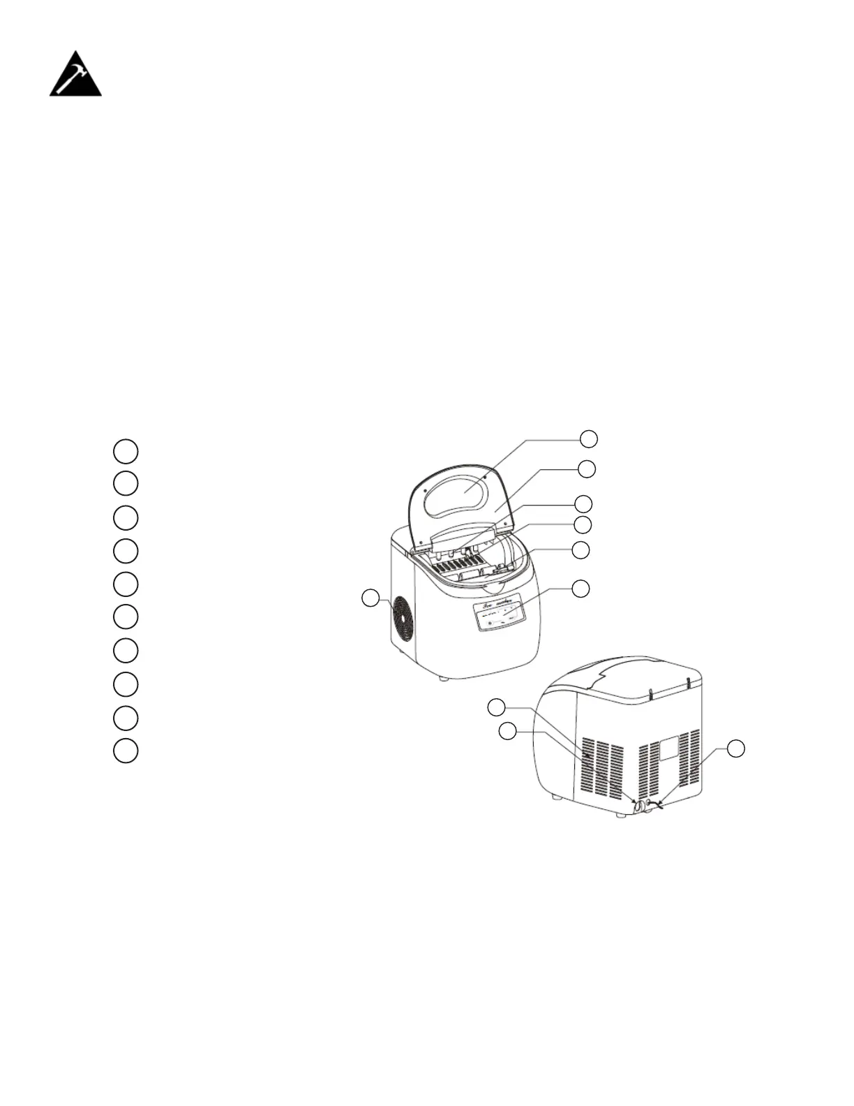 1. Coloque la máquina de hielo de manera segura sobre una superfi cie resistente y plana.