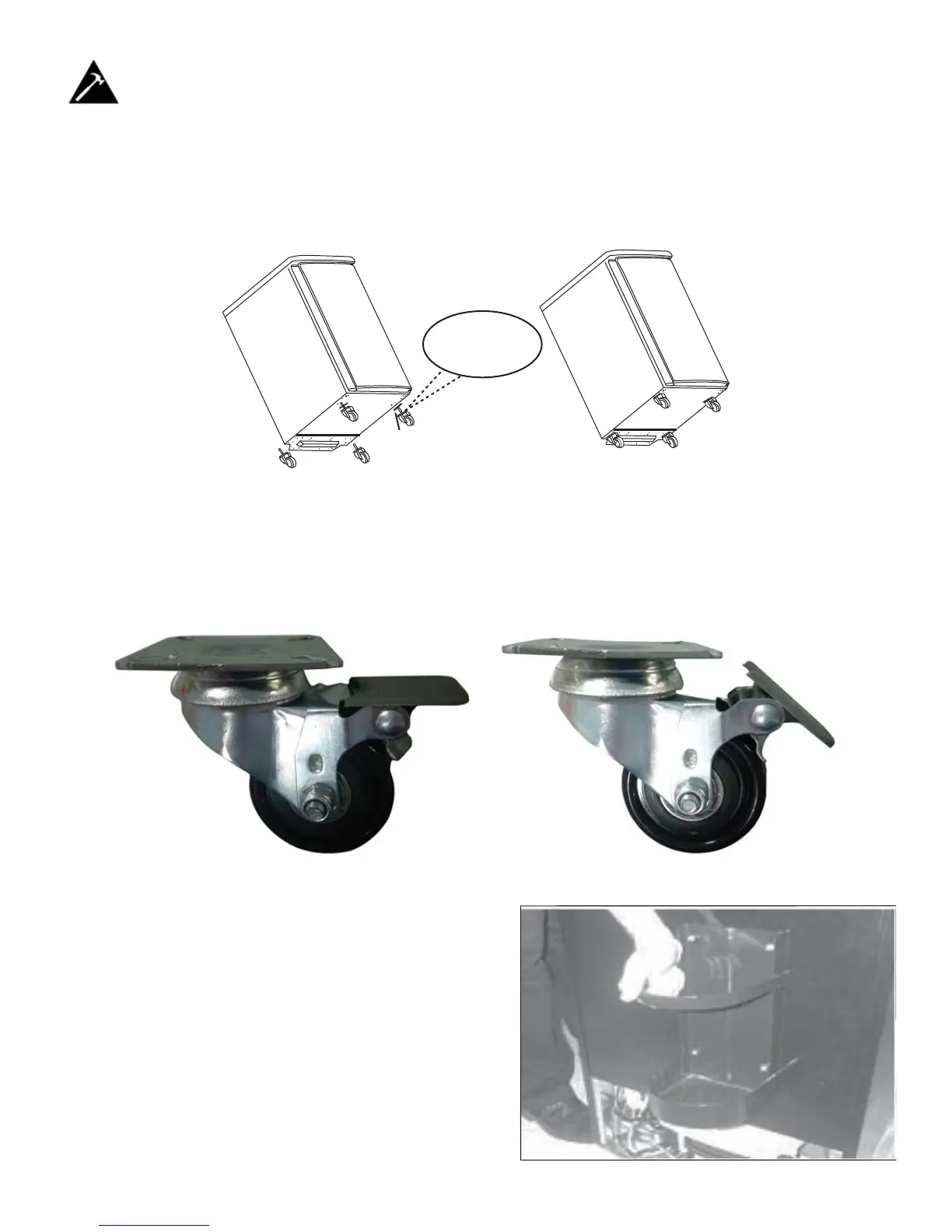 Instale las cuatro ruedas. Se han perforado cuatro orifi cios de tornillo en el fondo de la unidad en