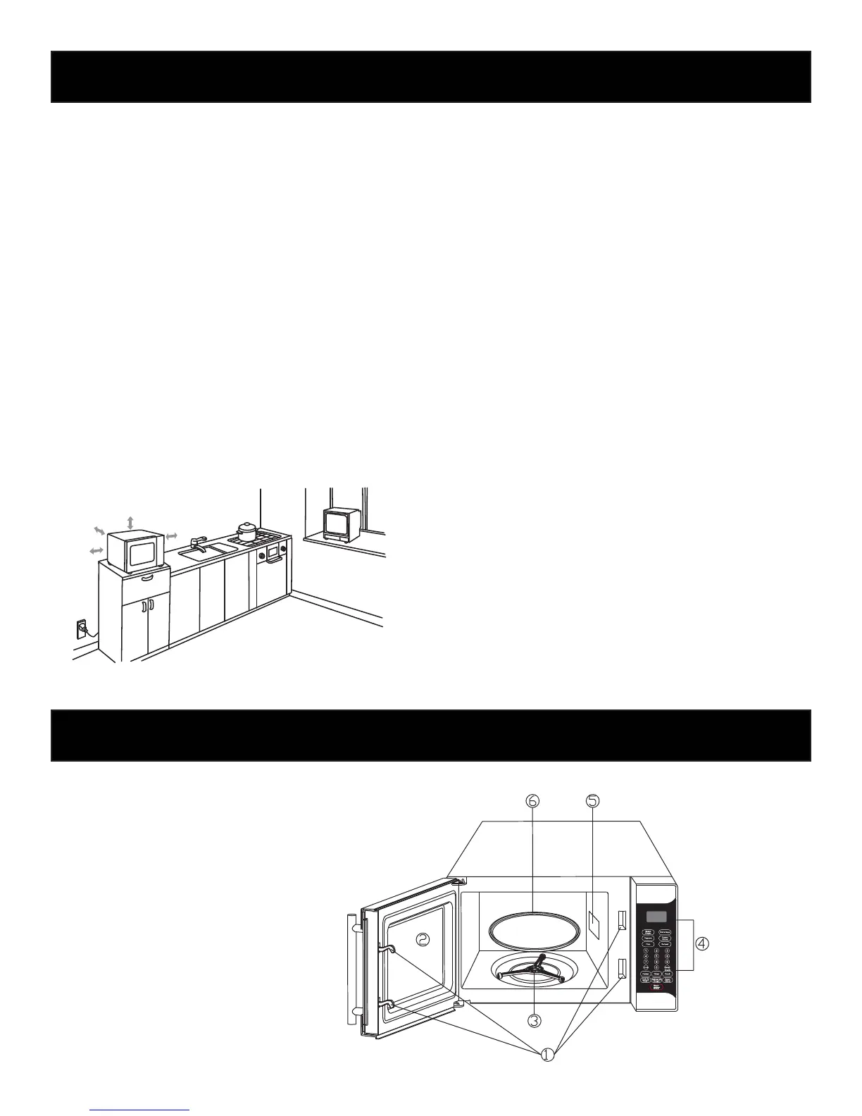 3. This microwave oven must be placed on a fl at, stable surface to hold its weight and the heaviest food likely to be