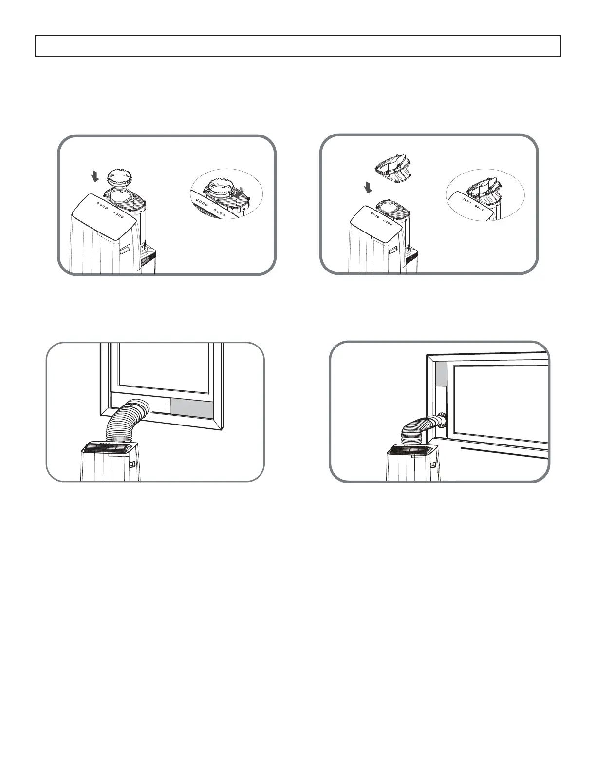 4. Para una ventana colgante, conecte el adaptador de salida de aire a la manguera de escape y gírelo