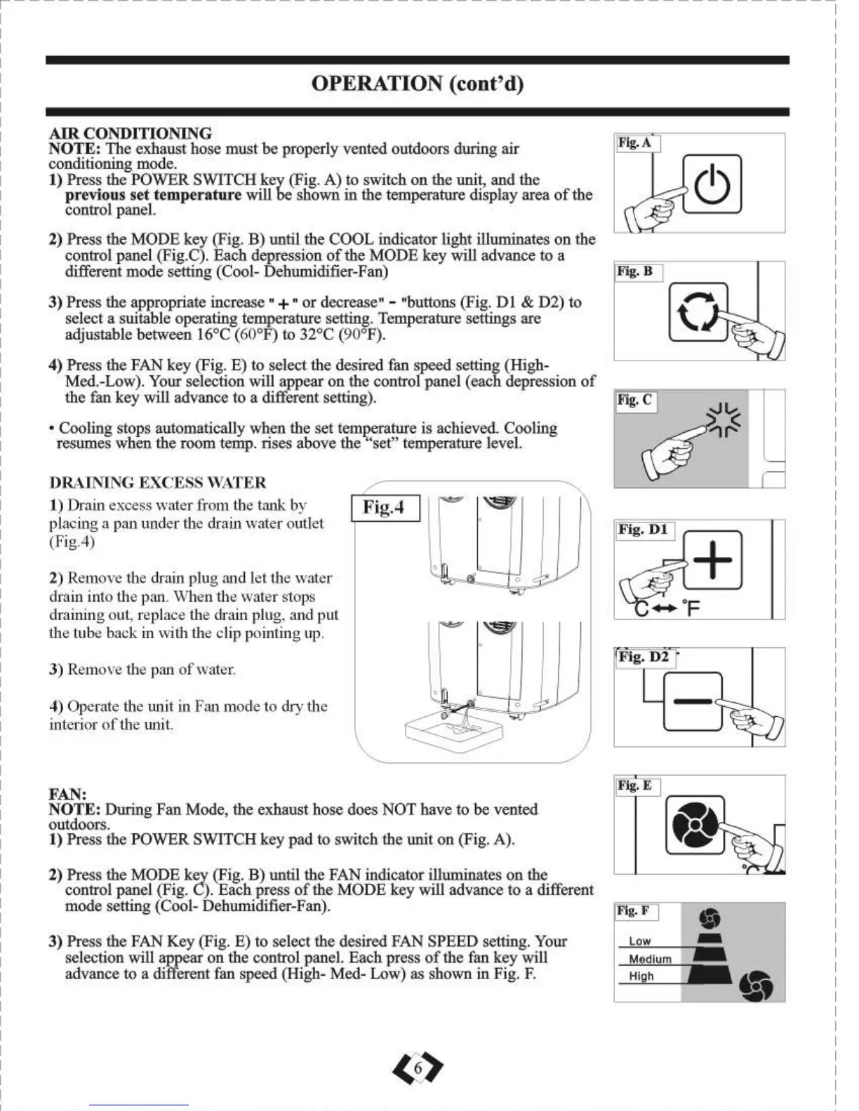 Danby DPAC10011BL - Operating Modes; Water Drainage & Hose Management