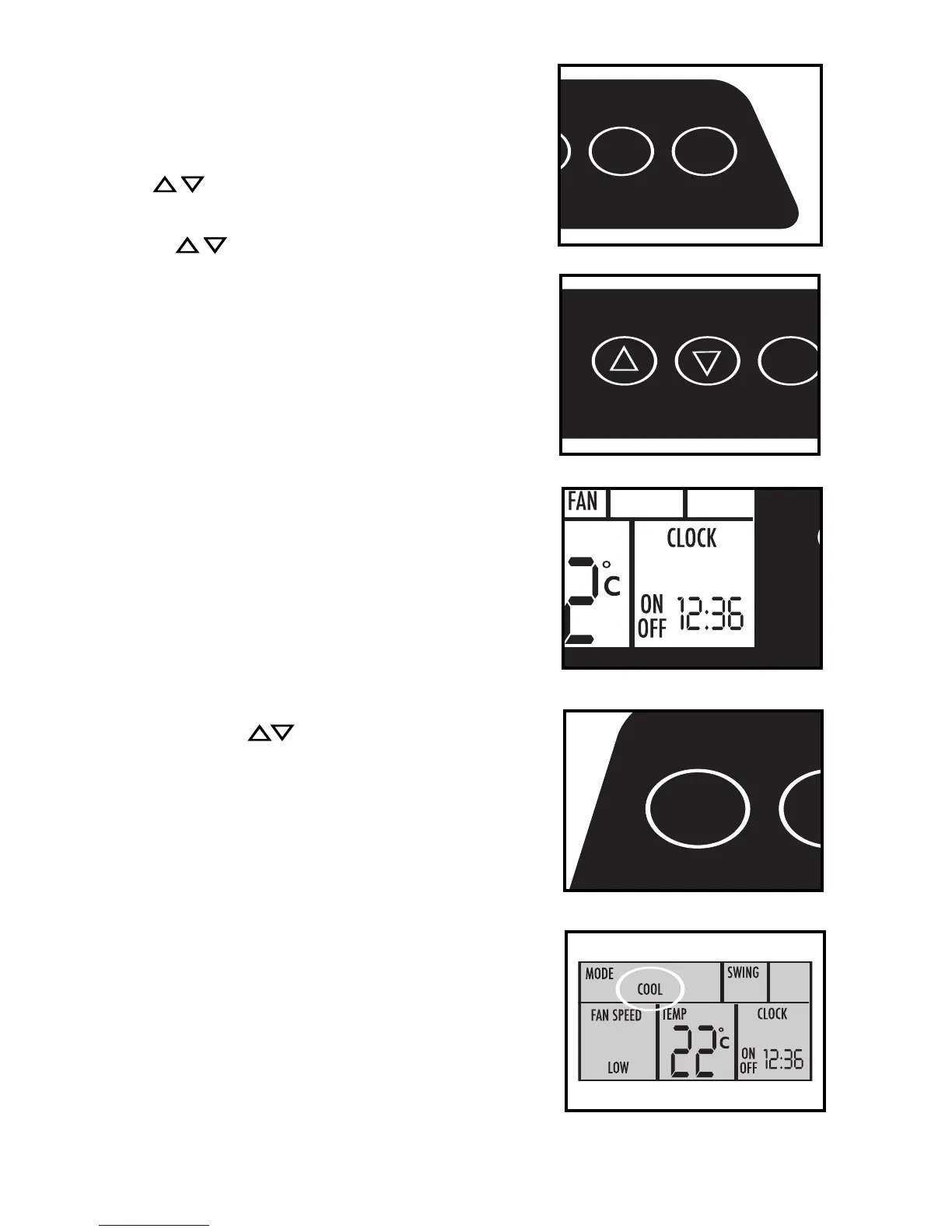 2) Press the MODE key until the word COOL