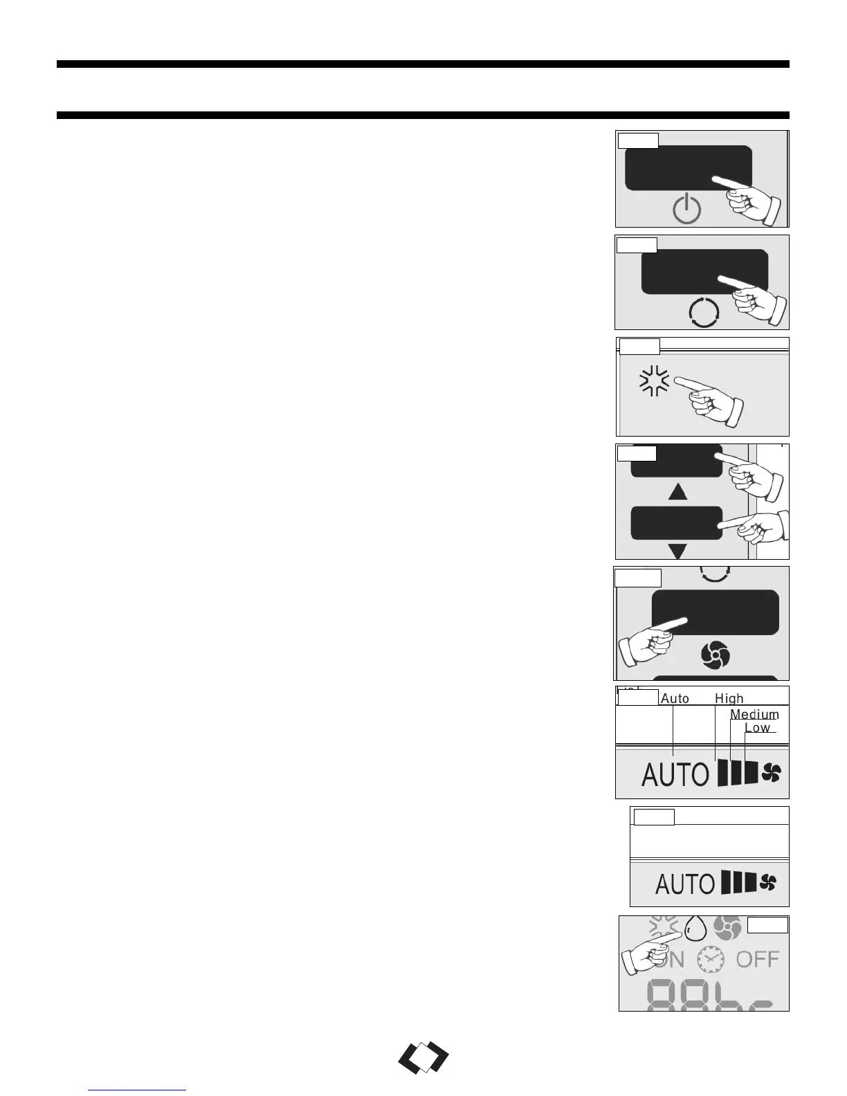 Chaque presse sur la touche VENTILATEUR avancera l’affichage à un réglage