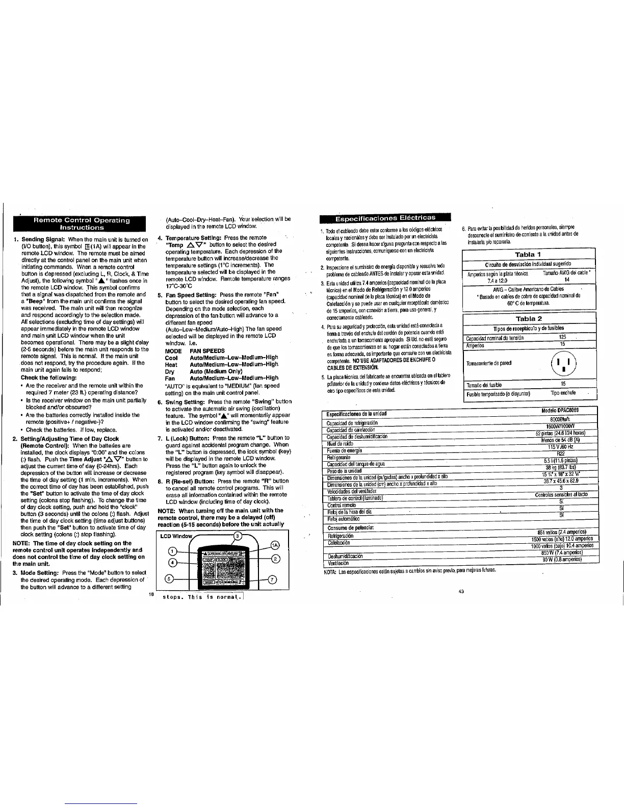 Danby DPAC8098 - Remote Control Operating Instructions