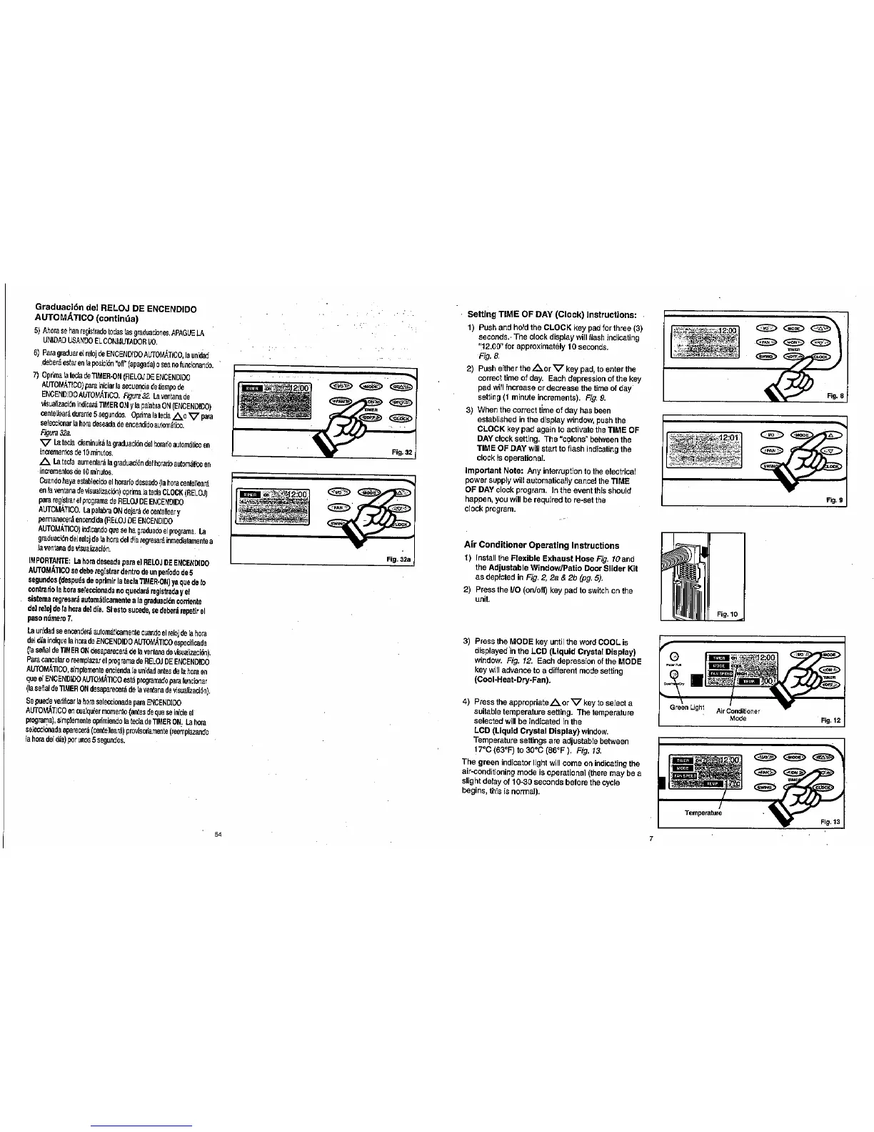 Danby DPAC8098 - Air Conditioner Operating Instructions; Setting TIME OF DAY (Clock) Instructions: