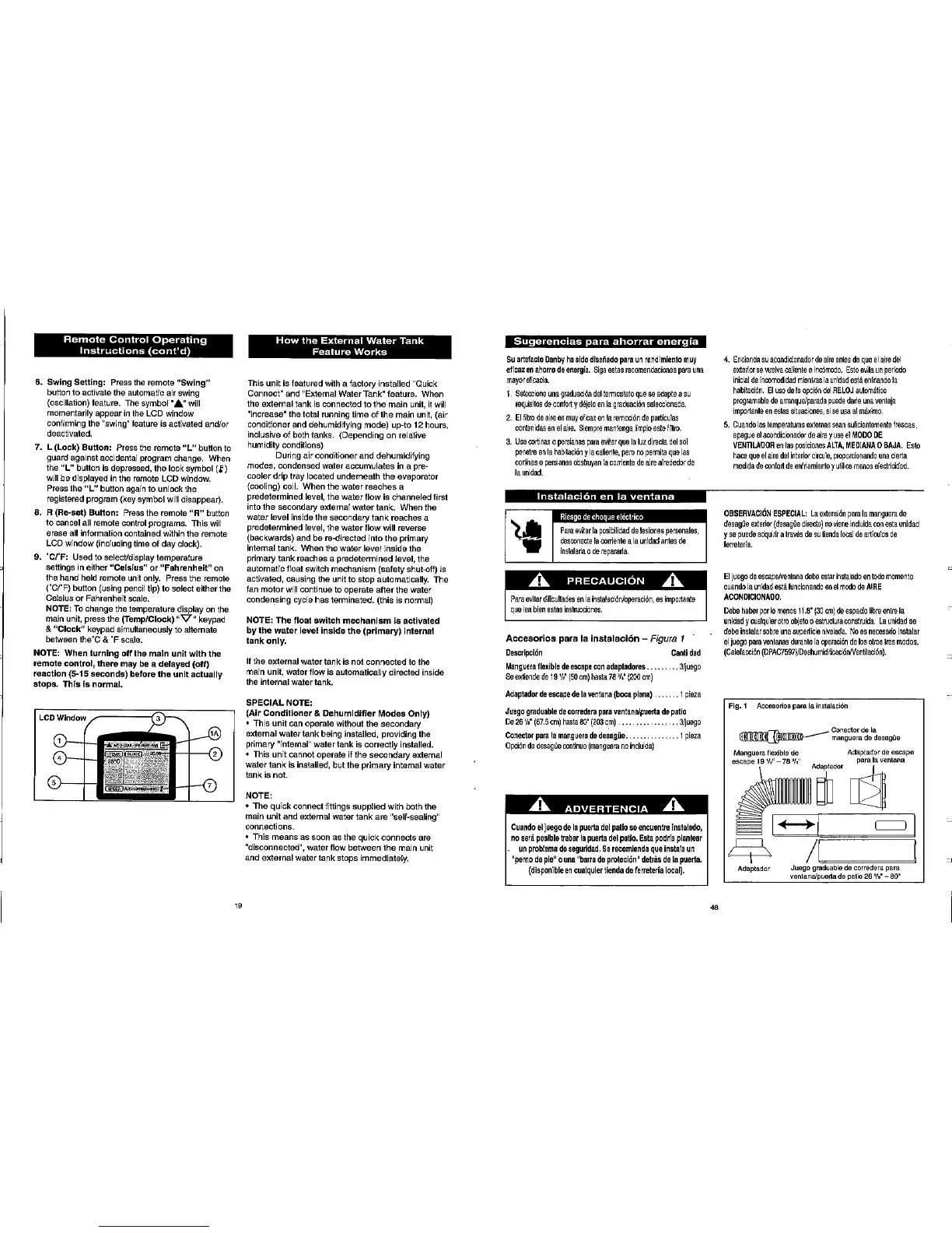 Danby DPAC8099 - LCD Window; How the External Water Tank Feature Works