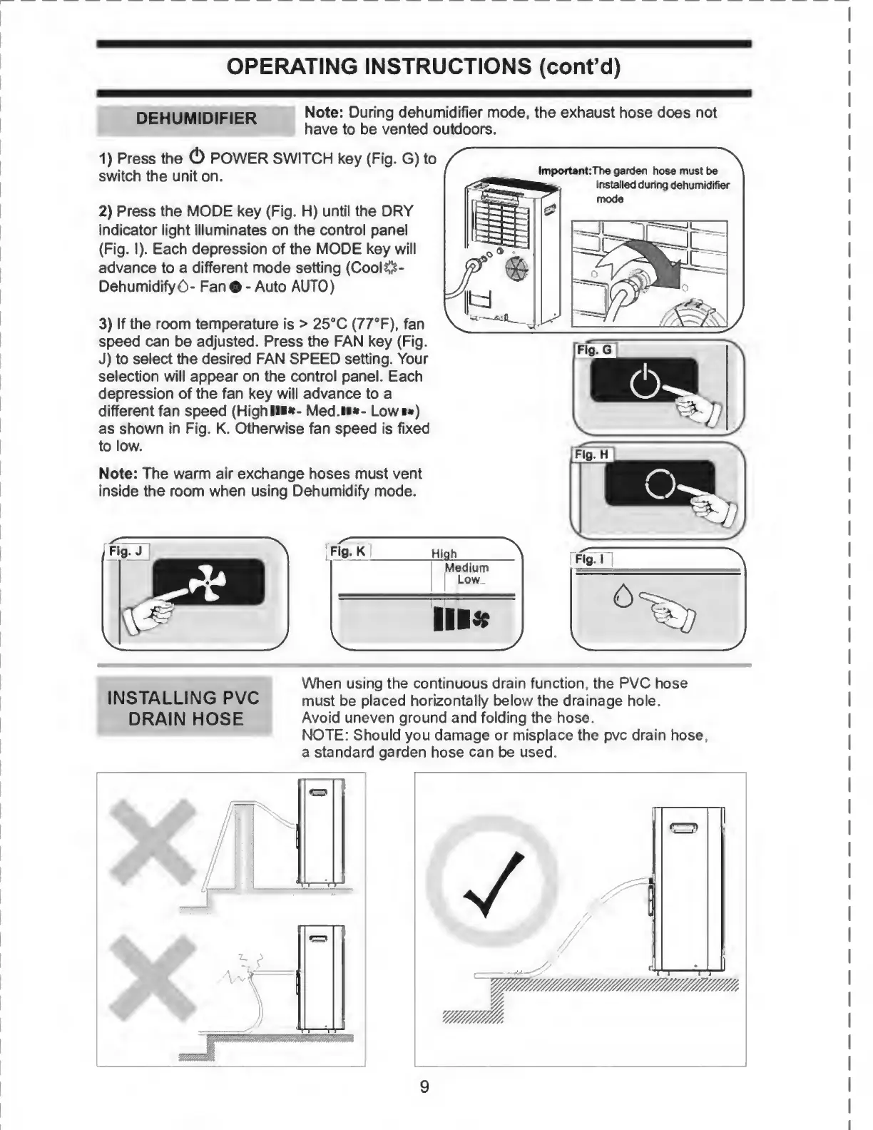 Danby DPAC8KDB - Dehumidifier and Drain Hose Installation; Dehumidifier Mode Operation; Installing PVC Drain Hose