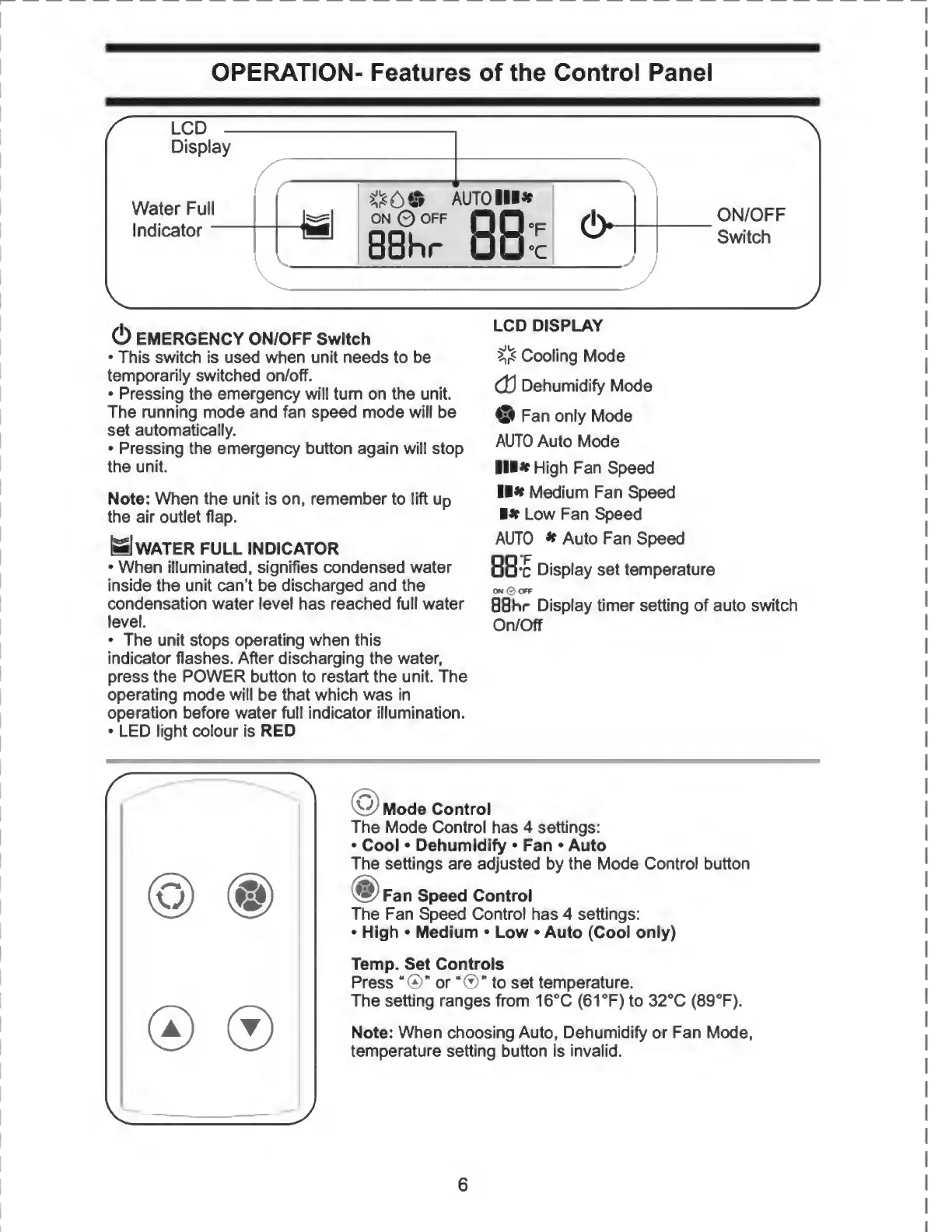 Danby DPAC8KDB - Control Panel Overview and Features; LCD Display Indicators; Mode and Fan Speed Controls