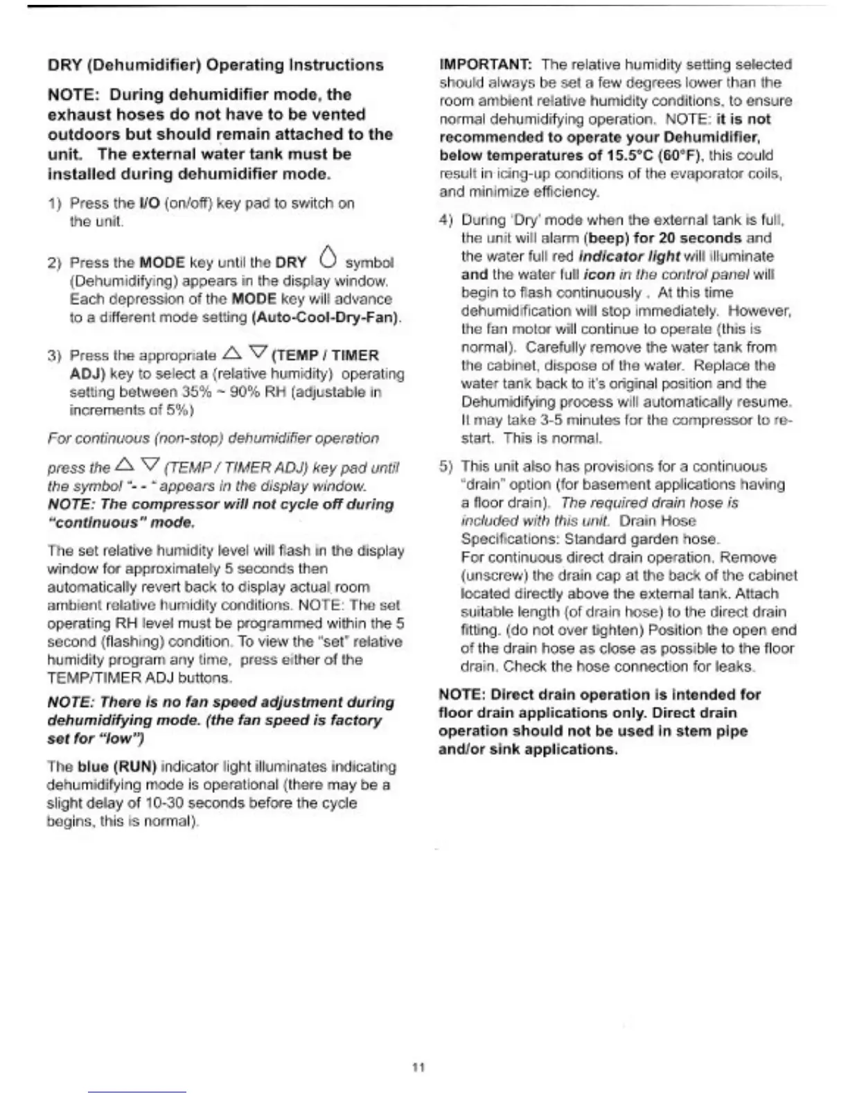 Danby DPAC9008 - DRY (Dehumidifier) Operation