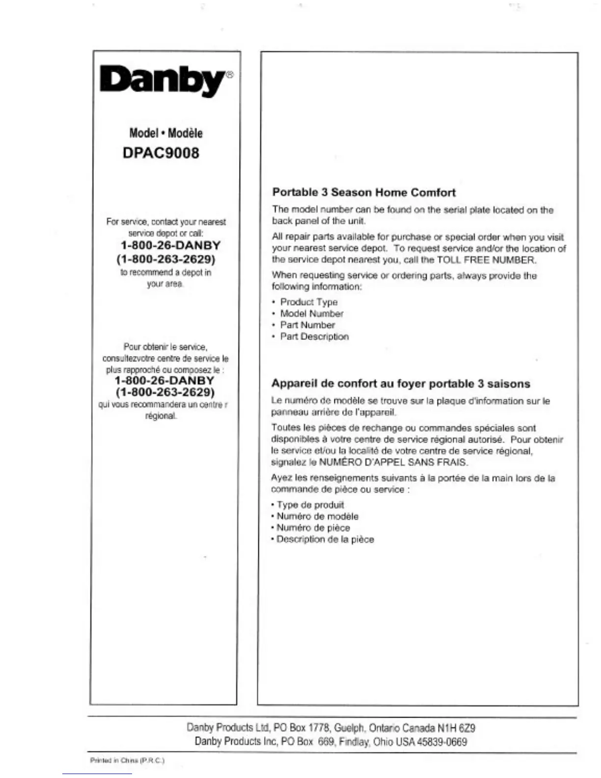 Other manuals for Danby DPAC9008