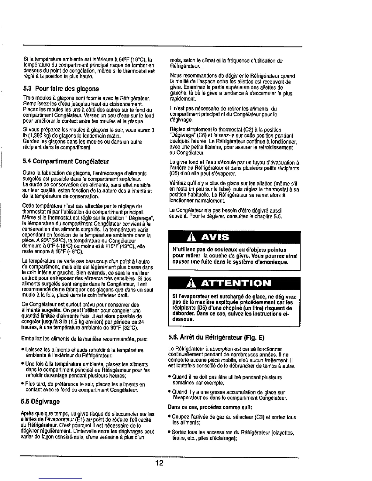 5,6. Arr_t du Rdfrig_rateur (Fig. E)