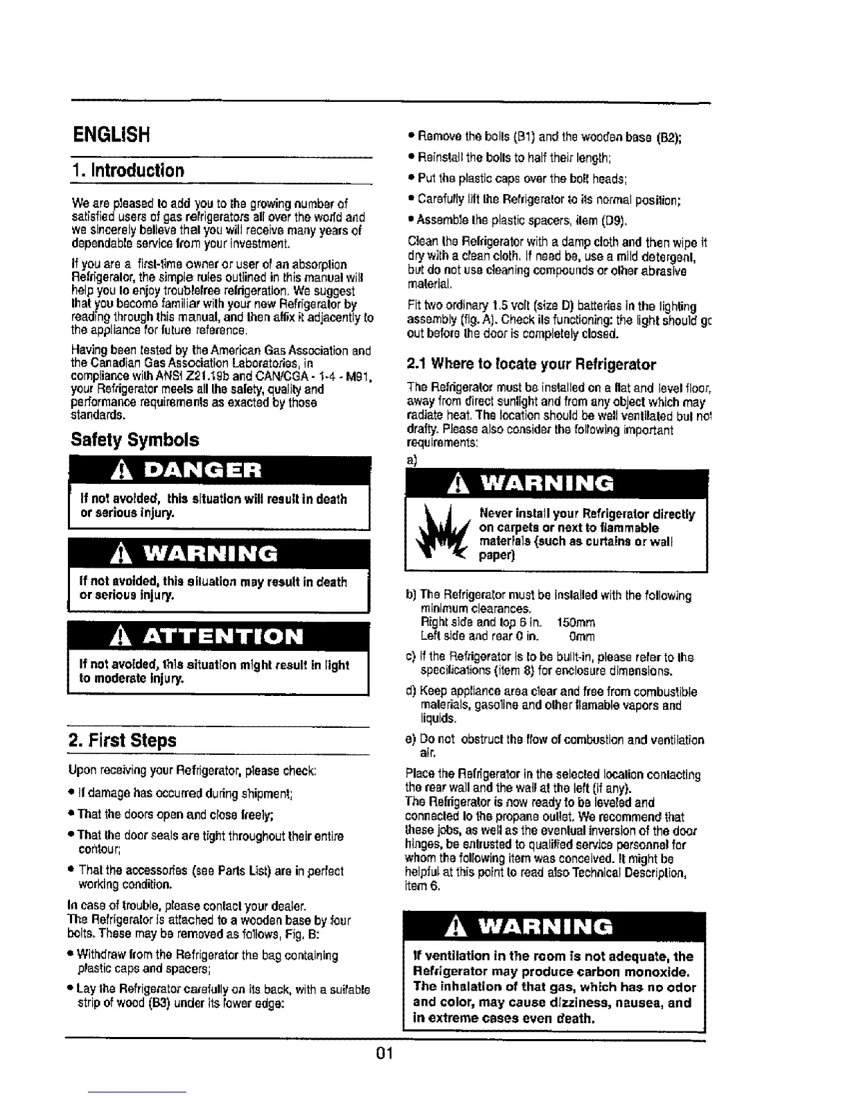 The Refrigeratormustbe inst_lledon a fiatand levelfloor,