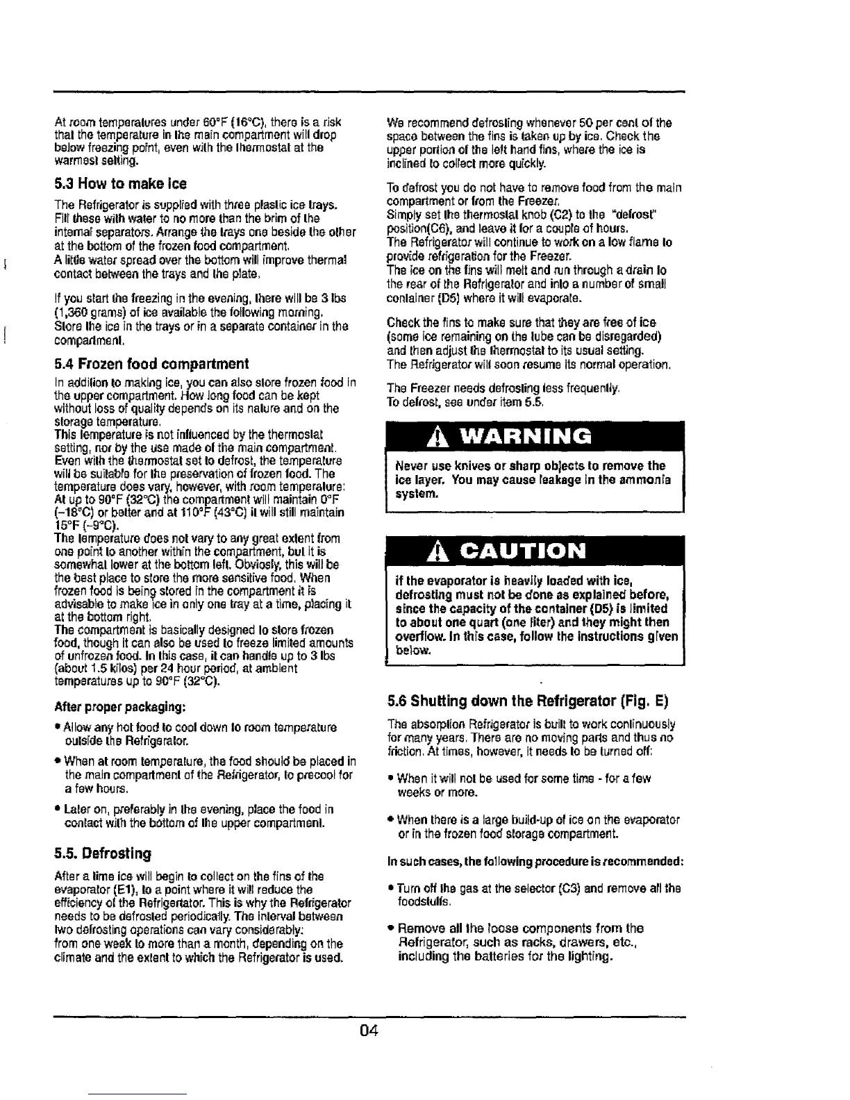 5.6 Shutting down the Refrigerator (Fig. E)