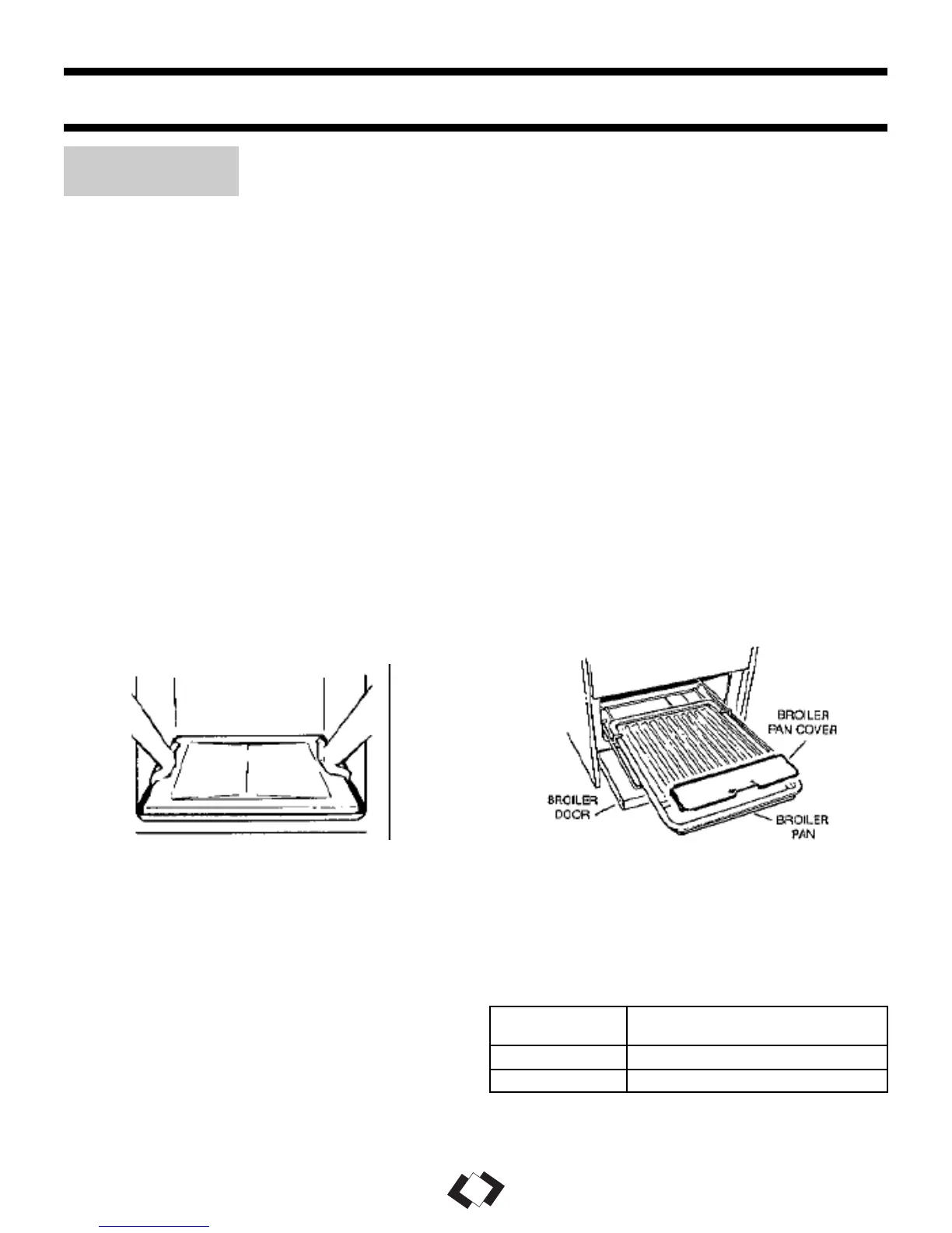 Broiling: (Broiling Pan NOT INCLUDED)