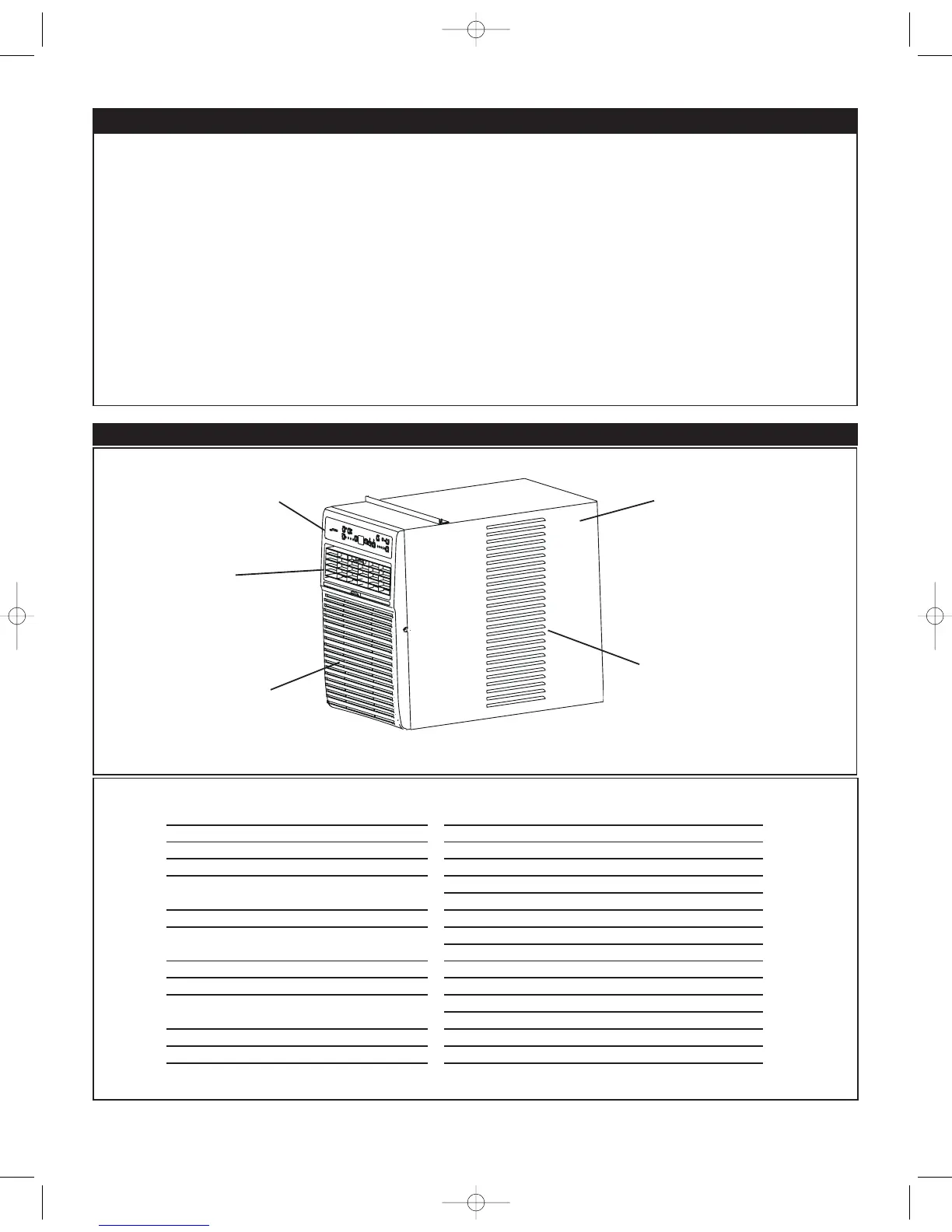 Danby DVAC10038E - Table of Contents; Identification des Pièces