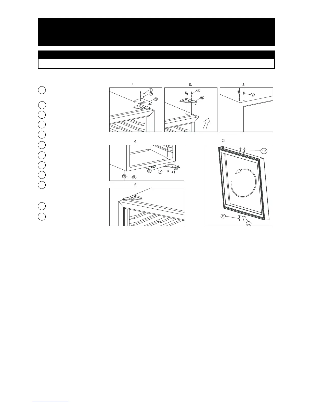 9. Fixez la charnière supérieure (5) sur le coin supérieur gauche du cabinet au moyen de vis (4), ajustez