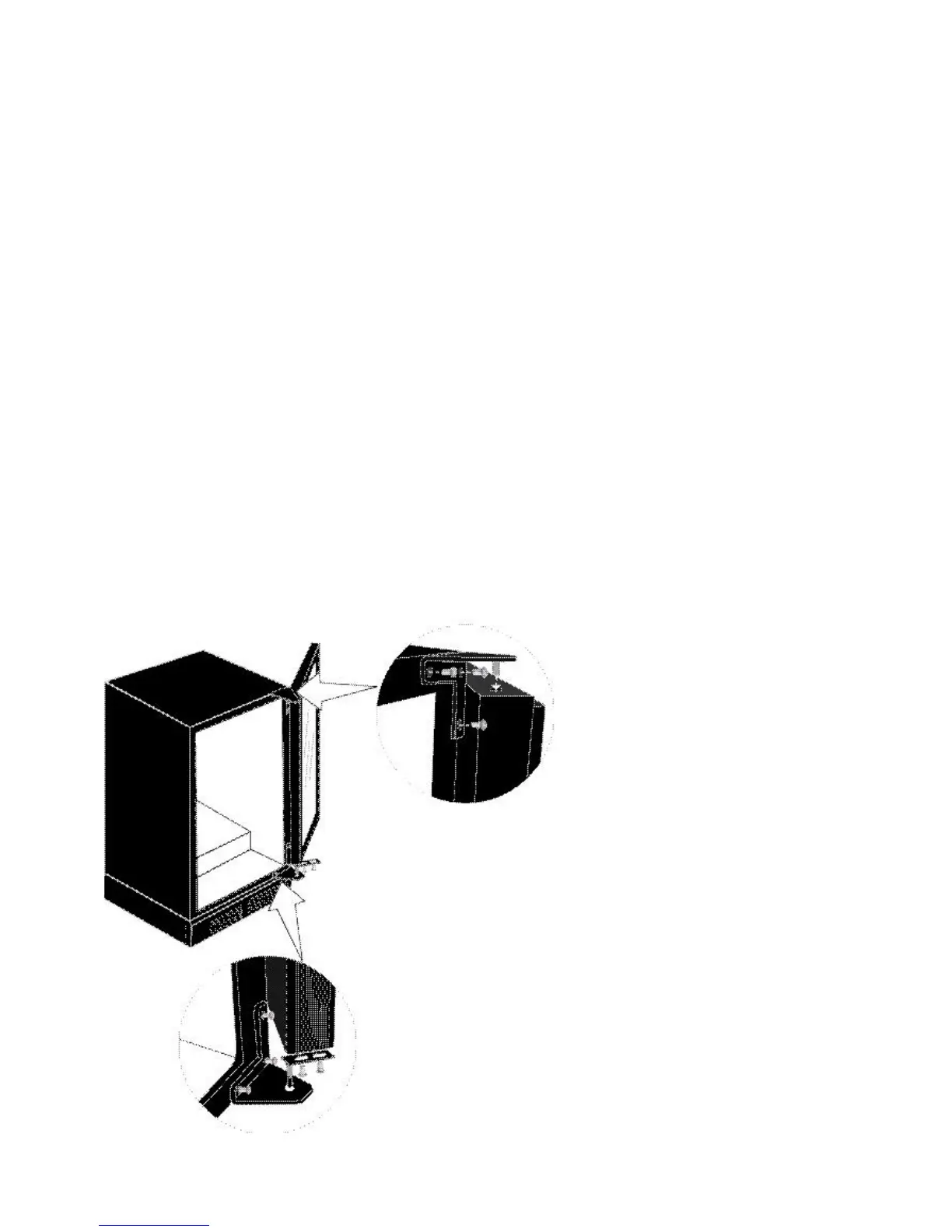 11. With door closed against the cabinet install one screw into the lower door support bracket.