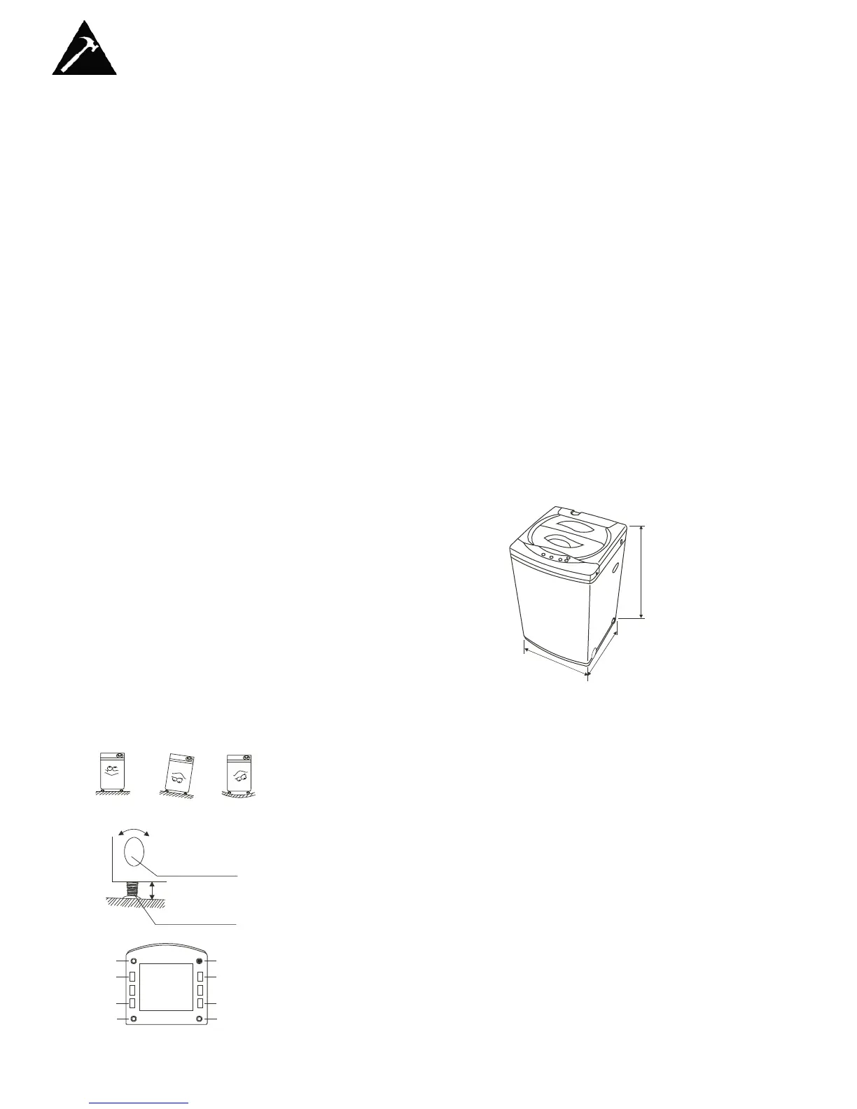 • If the washer is placed on an uneven or weak surface, noise or vibration