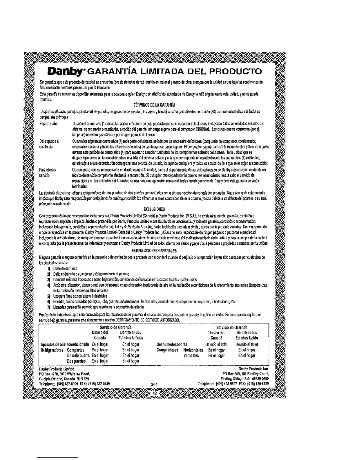 Danb GARANTfA LIMITADA DEL PRODUCTO