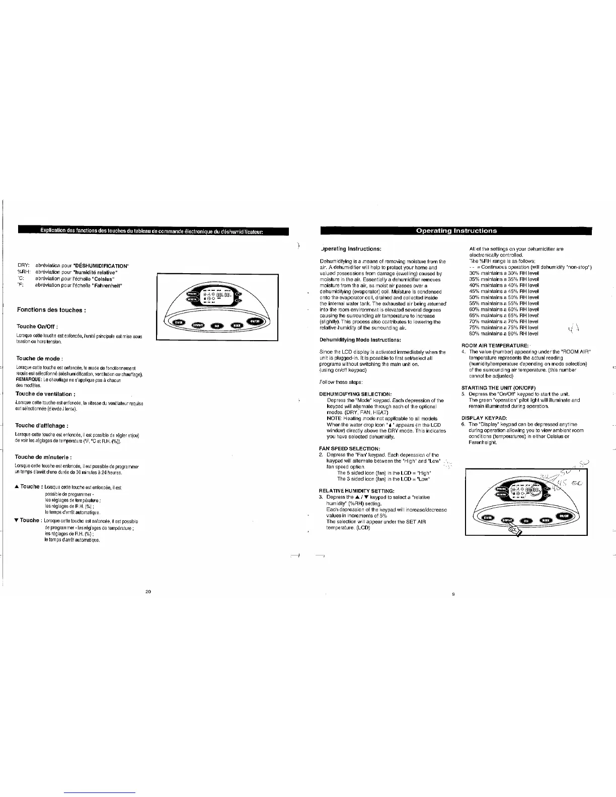 Danby Millenium DDR301 - Operating Instructions (Continued); Dehumidifying Mode Instructions; Humidity and Temperature Settings