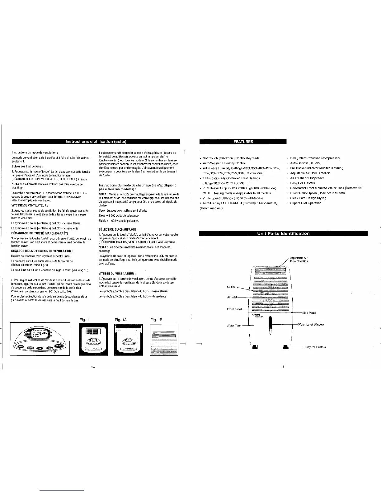 Danby Millenium DDR301 - Operating Instructions; Fan Mode Instructions; Heater Mode Instructions