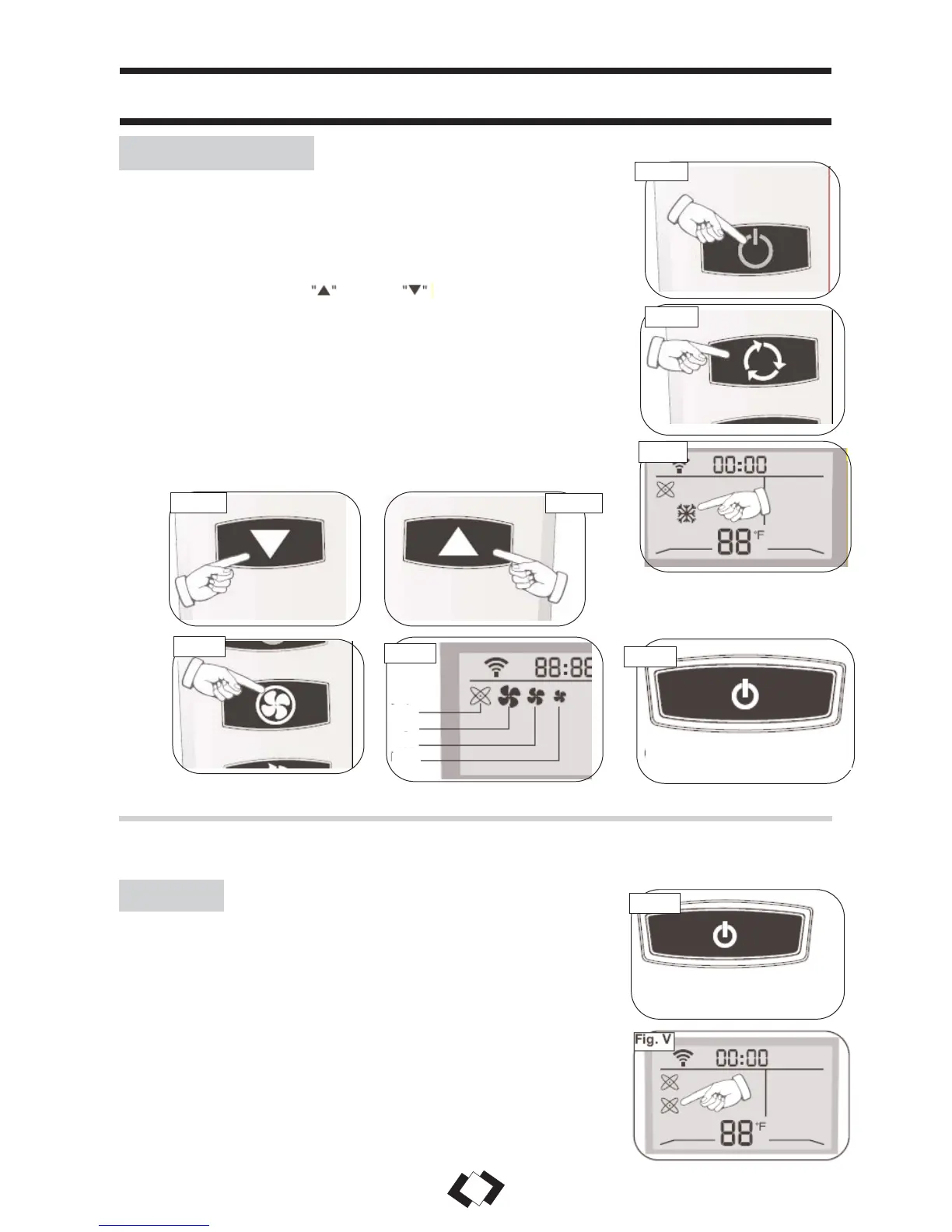 4) Press the FAN key (Fig. E) to select the desired fan speed