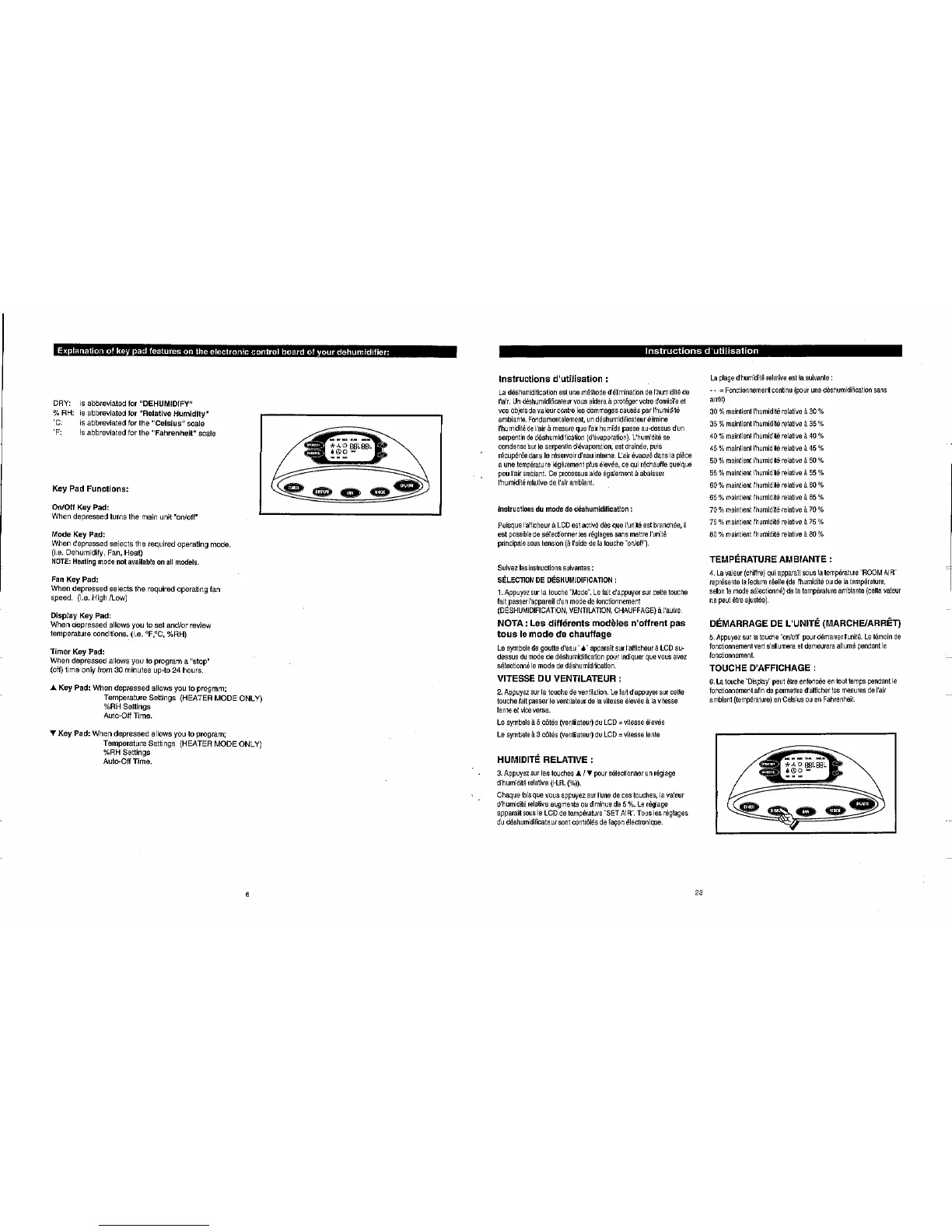 Danby SDR458H - Key Pad Functions; Operating Modes and Controls; Dehumidifying Mode Instructions; Temperature and Humidity Settings