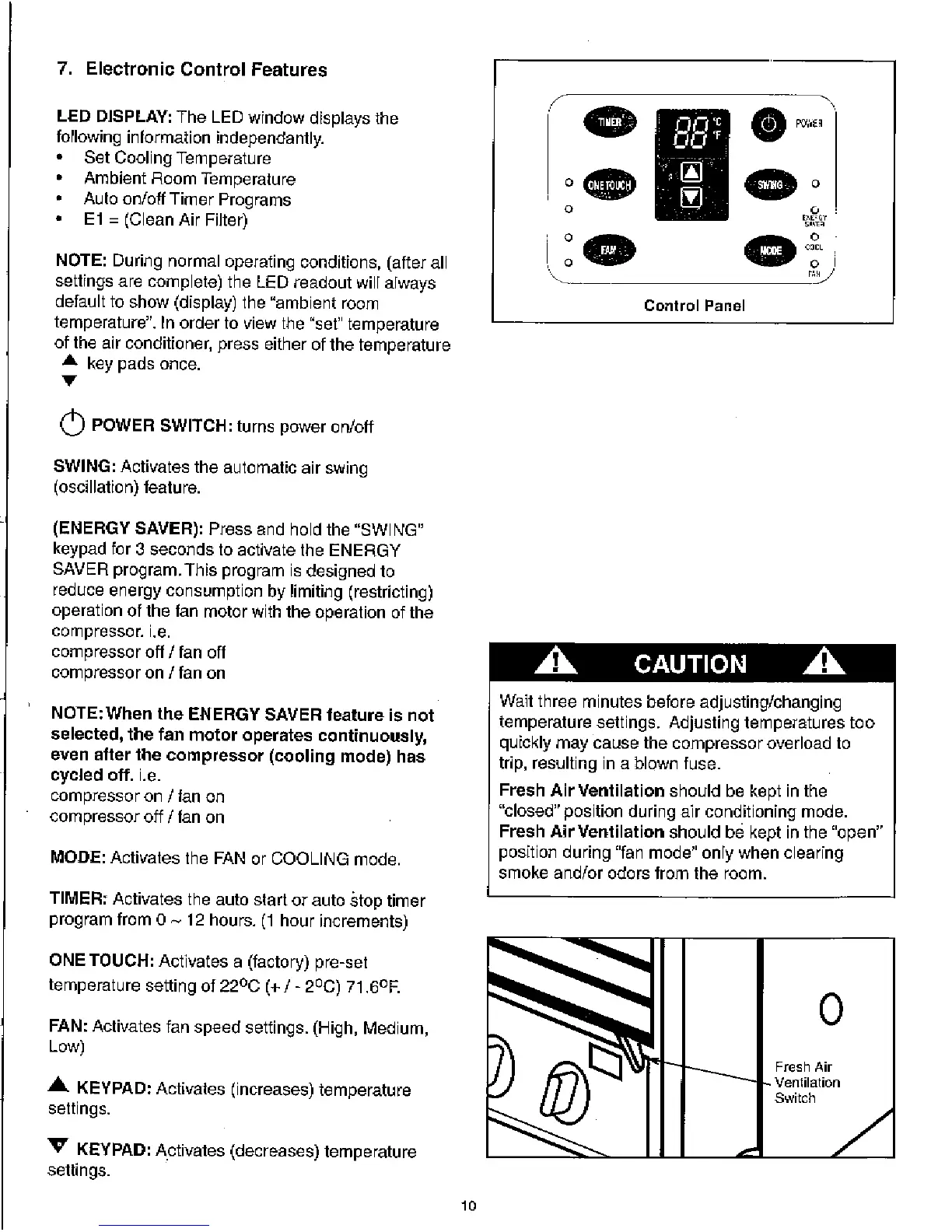 Danby Simplicity SAC10504D - Electronic Control Features