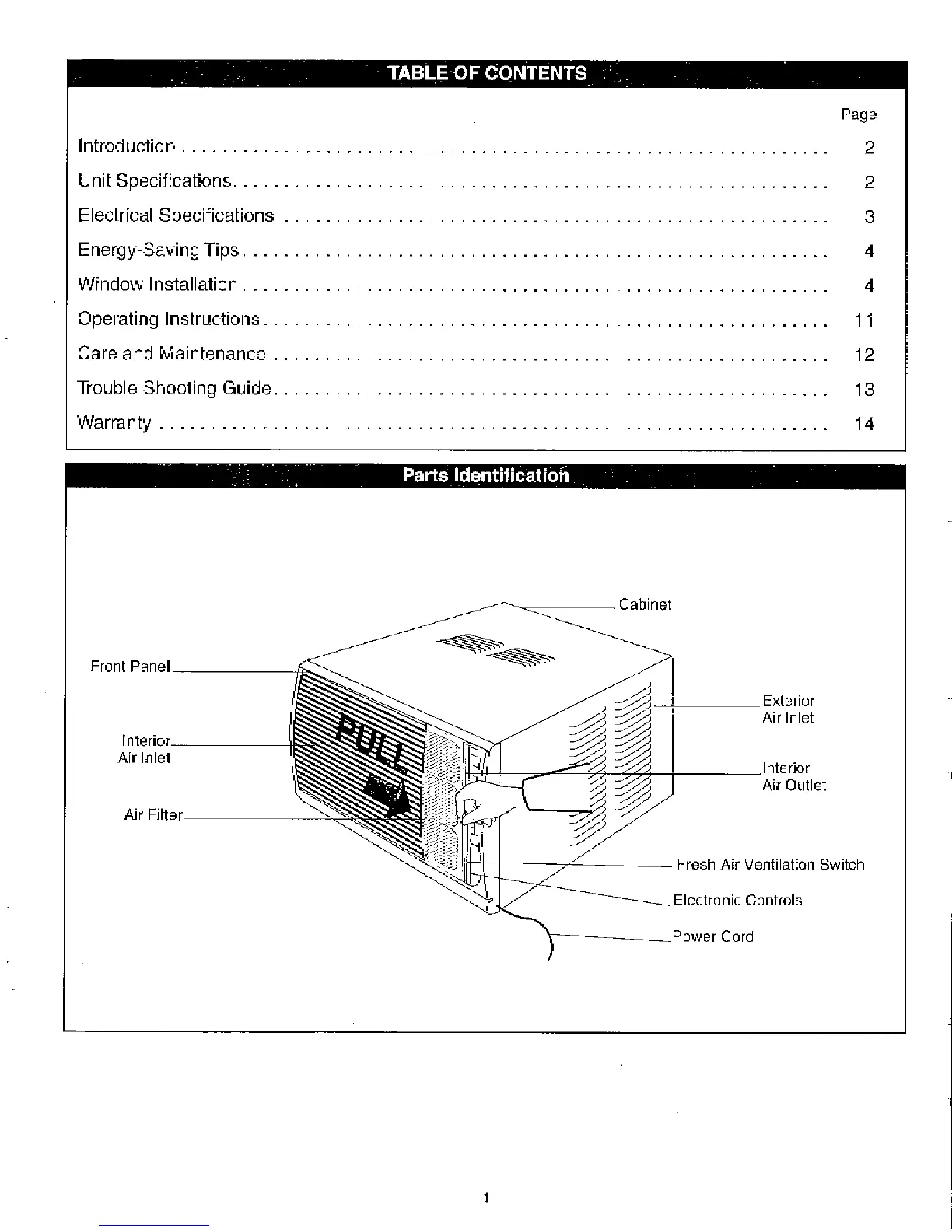 Danby Simplicity SAC10504D - Table of Contents; Product View and Parts Identification