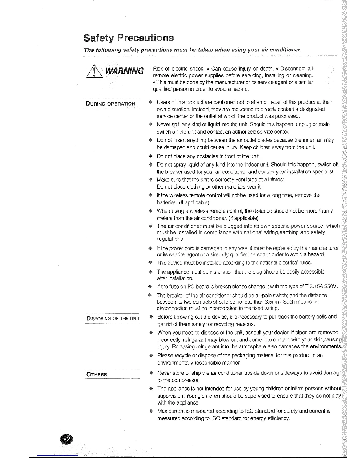 Danby Simplicity SAC5000EE - Safety Precautions; General Safety Warnings; Operation Safety; Disposal and Environment