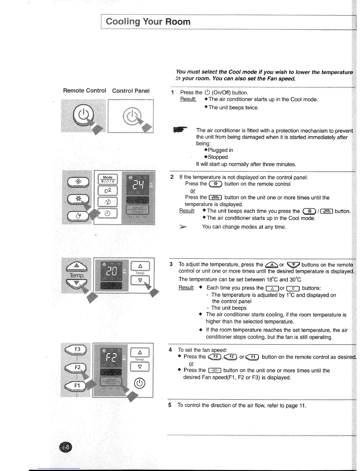 Danby Simplicity SAC5000EE - Cooling Operation; Setting Cool Mode; Temperature Adjustment; Fan Speed Settings