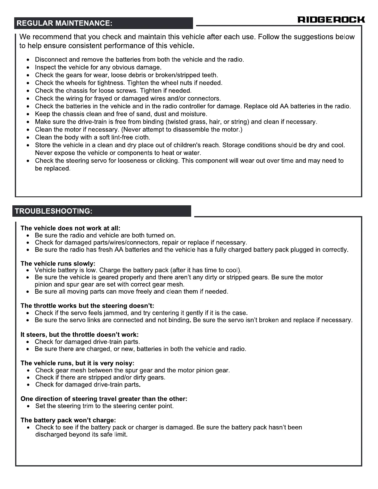 • Be sure the vehicle is geared properly and there aren't any dirty or stripped gears. Be sure the motor